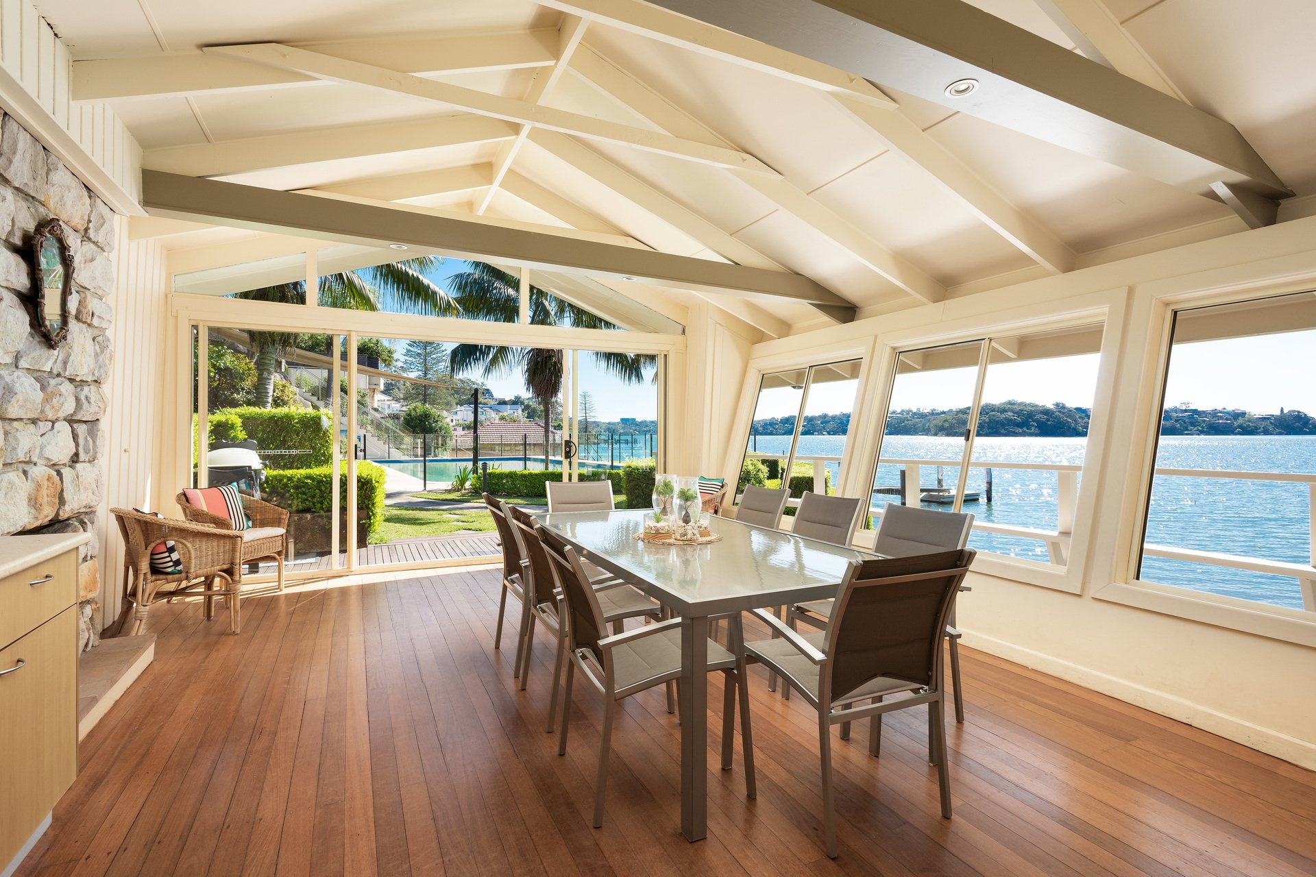 This magnificent residence presents an exceptionally rare opportunity, having been tightly held by only 3 owners since its construction in 1952. Occupying a sprawling landholding of approx. 1,020 square metres, and crafted from hand-picked Derbyshire sandstone, "Inverness" has been beautifully re-imagined and refurbished. Nestled within the affluent Southern Sydney suburb of Kangaroo Point and situated on the eastern side of Kangaroo Point Road, this distinguished home commands panoramic views over the sparkling waters of the Georges River across to Tom Ugly's Bridge. This remarkable home boasts voluminous proportions, over two expansive levels and is ideally configured for living, dining and entertaining on a grand scale.