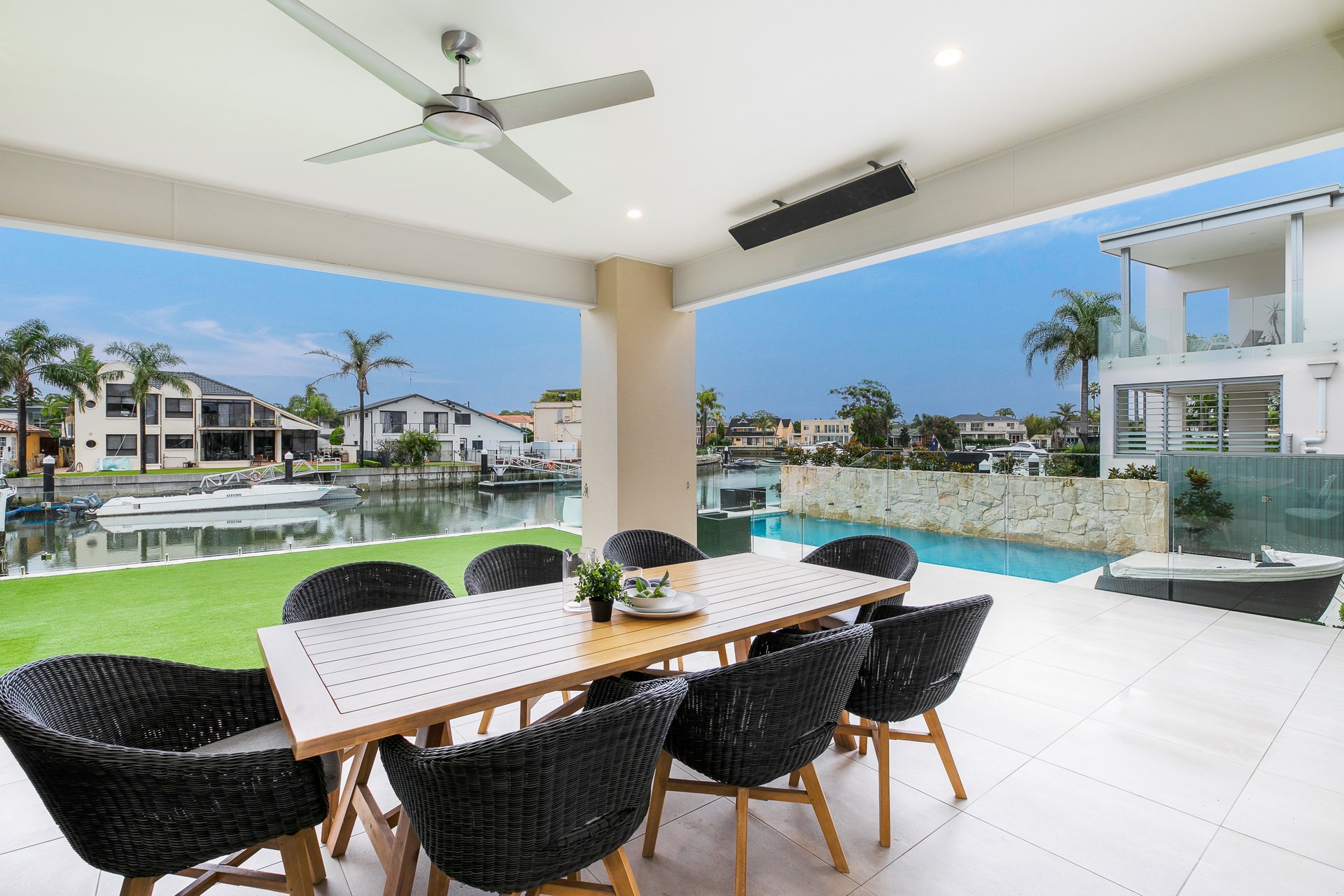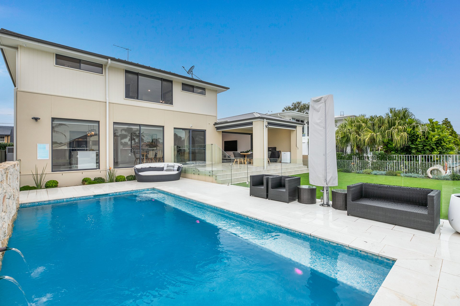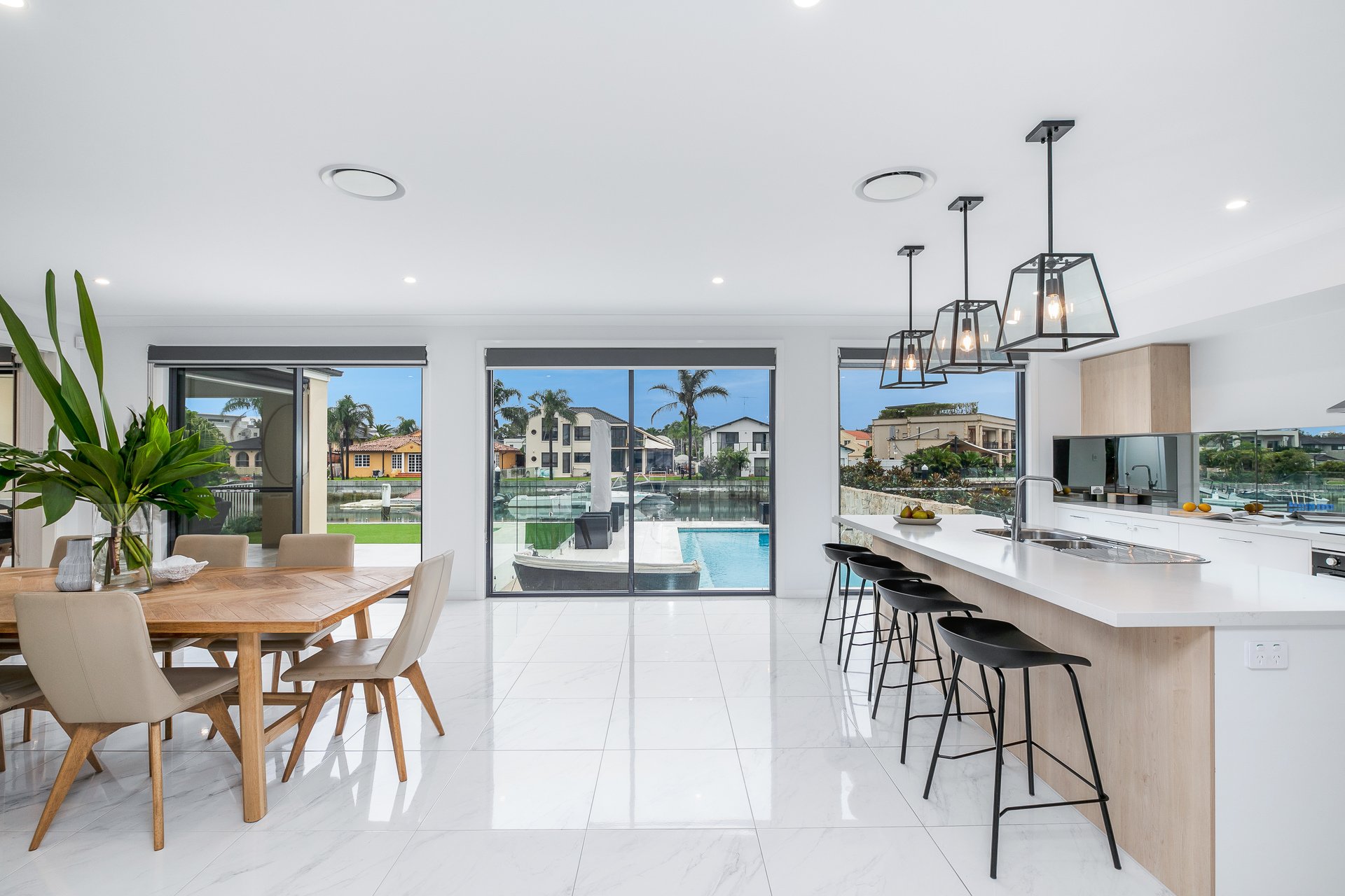 An absolute masterpiece of contemporary design and grandeur, this flawless family home offers an exclusive lifestyle opportunity with level living areas leading directly to the water's edge.