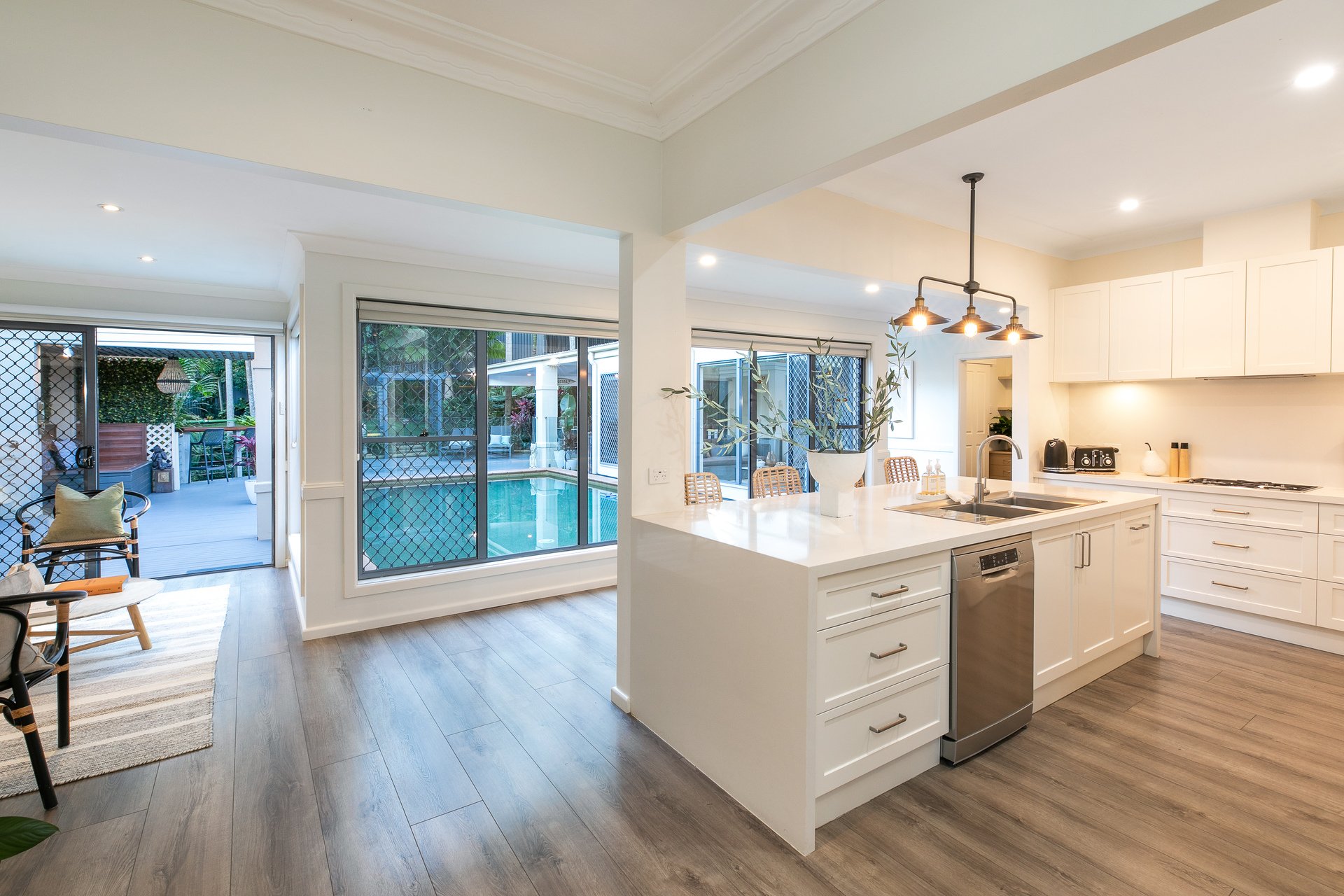 Fusing luxury with seclusion, this flawlessly appointed residence delivers seamless integration between indoors and out and exudes a unique sense of peace and privacy. Its refined interiors are wrapped in a tropical leafy backdrop and offer plentiful space to relax, play and entertain. Residing on an impressive 758sqm parcel of land, the property commands strong street appeal and is located within footsteps of the water's edge.