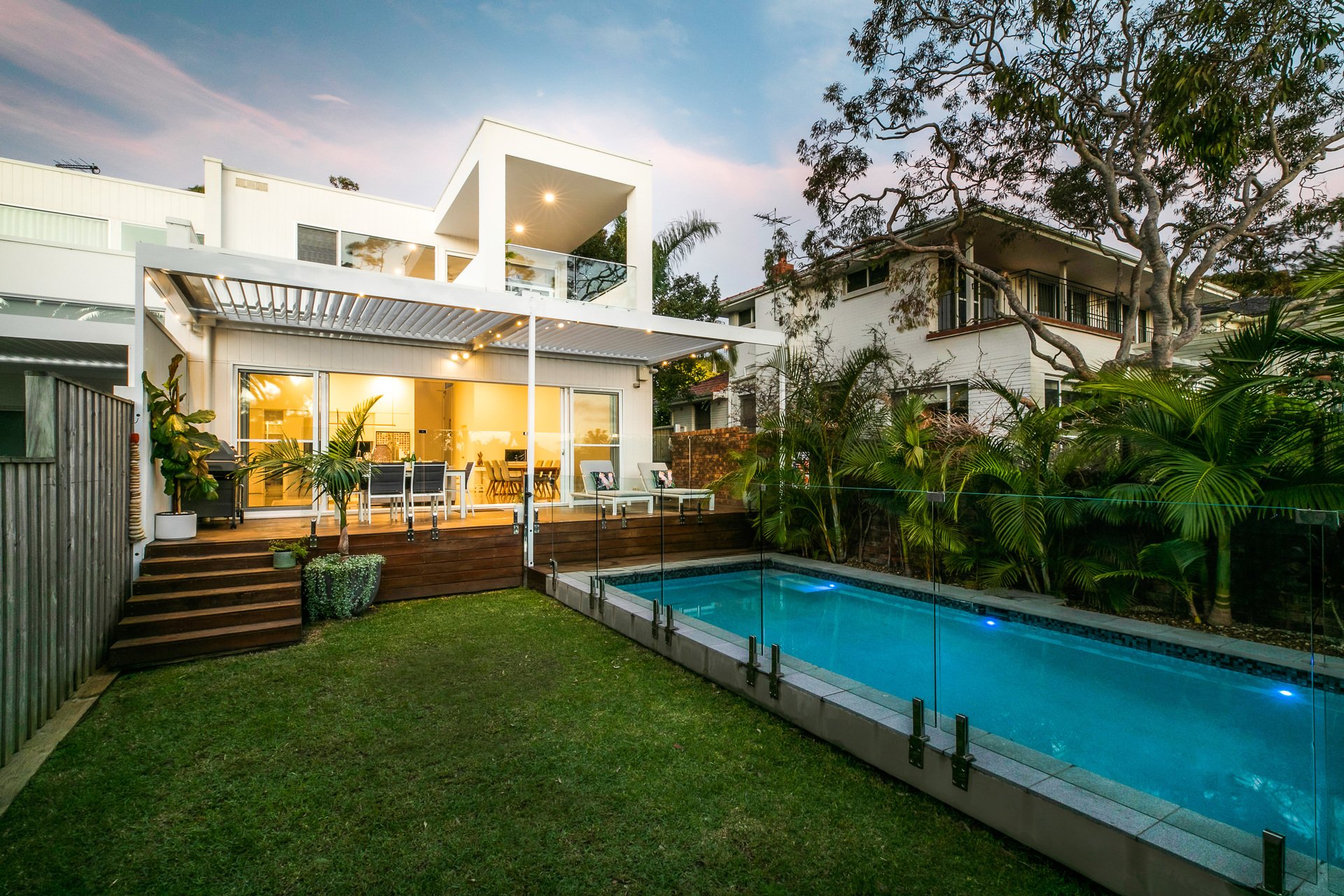 • ‐ Vergola covered entertainers' deck overlooks the pool and tropical gardens