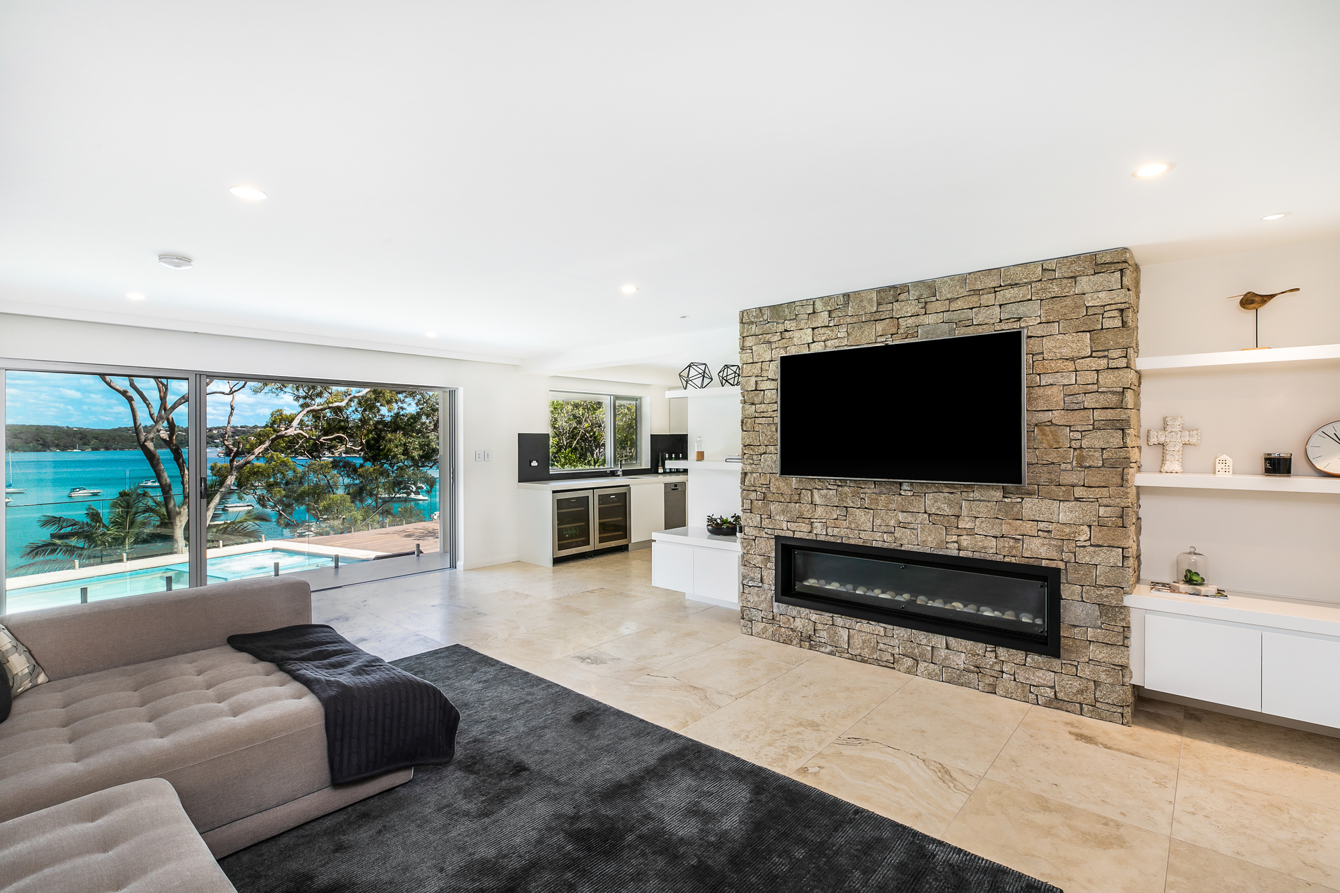 - ‐ Grand interiors showcase open plan living and stunning west facing water views