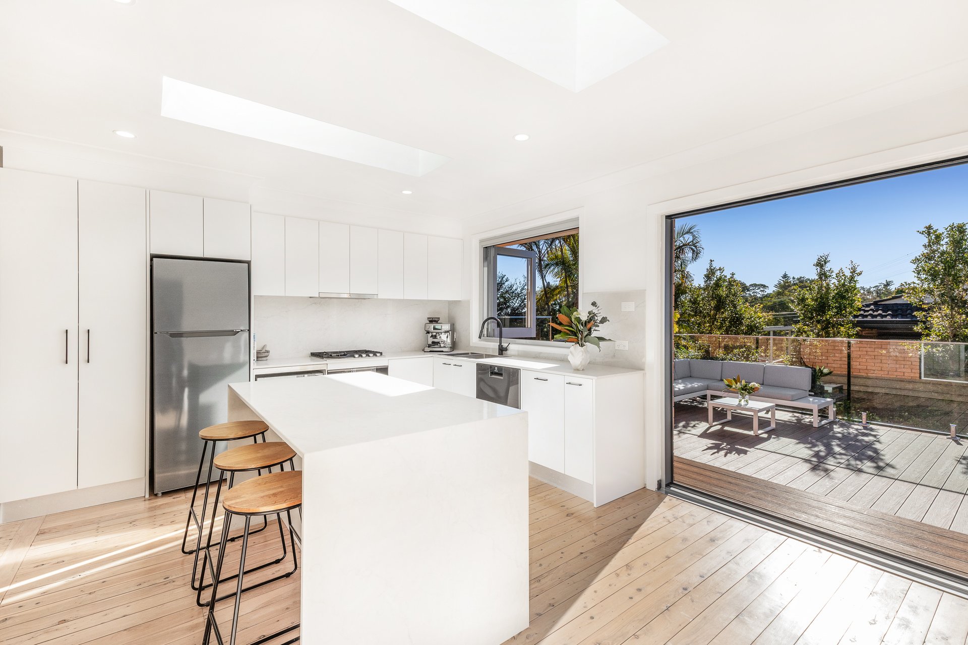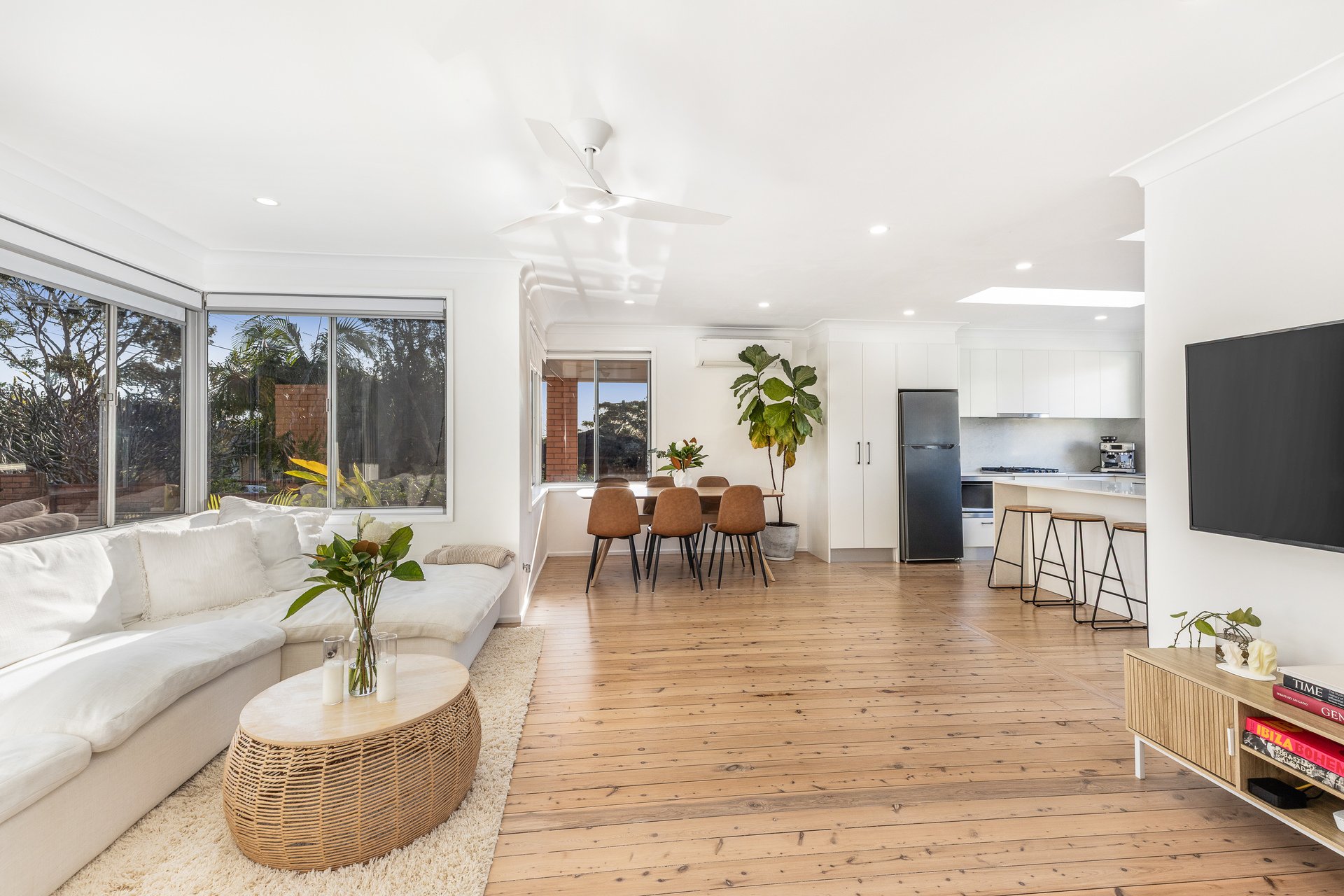 Nestled within a serene cul-de-sac at 5 Viburnum Road, Loftus, this elegantly renovated three-bedroom brick home marries modern sophistication with family-friendly comfort. Featuring light-filled interiors, immaculate gardens, and a sparkling in-ground pool, it provides a perfect setting for tranquil living.