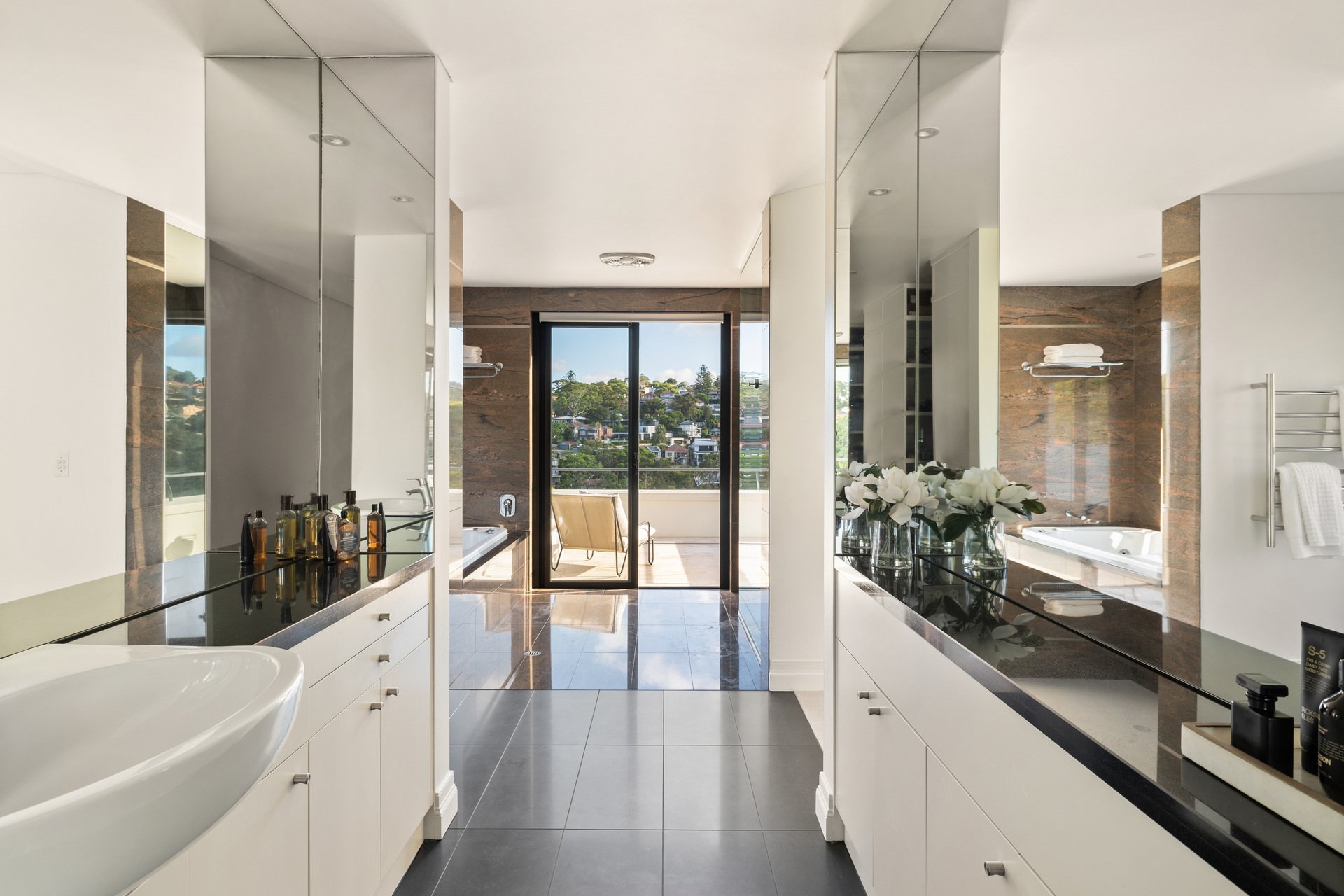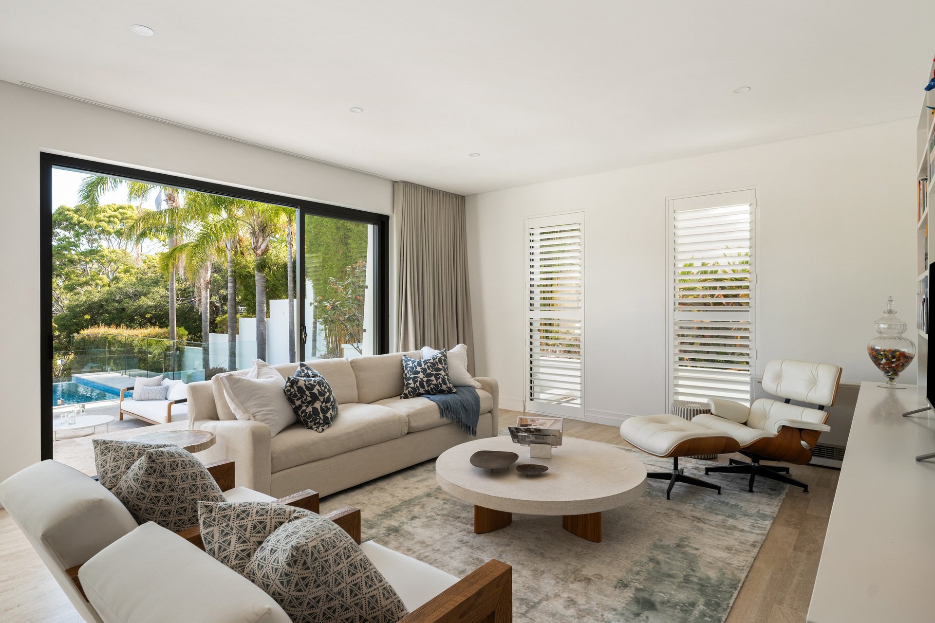 Tucked away in a peaceful cul-de-sac, this extraordinary residence blends architectural sophistication with a relaxed contemporary lifestyle. Spread across multiple levels on an impressive 2,744sqm (approx.) parcel, the home captures calming leafy outlooks and glimpses of Sailors Bay. Thoughtfully designed for both grand entertaining and everyday family comfort, it features a series of light-filled living zones, a Travertine terrace, and a saltwater infinity pool that steps gently toward the water’s edge.