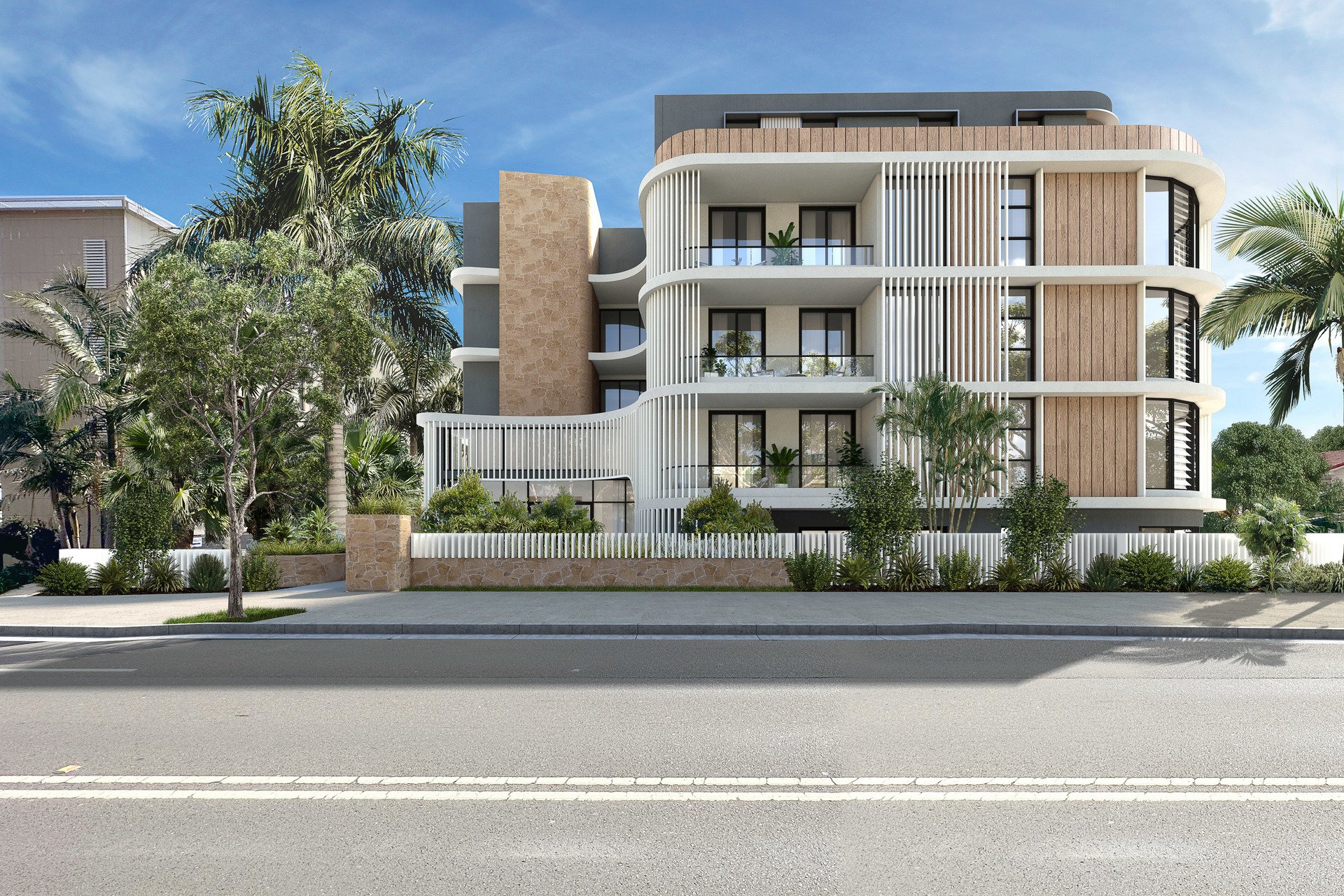 The building's elegant curves echo the movement of the waves, while sweeping floor-to-ceiling windows flood interiors with light and frame the ever-changing seascape. A palette of clean lines and organic textures, inspired by the coastal environment, creates a seamless connection between home and horizon.