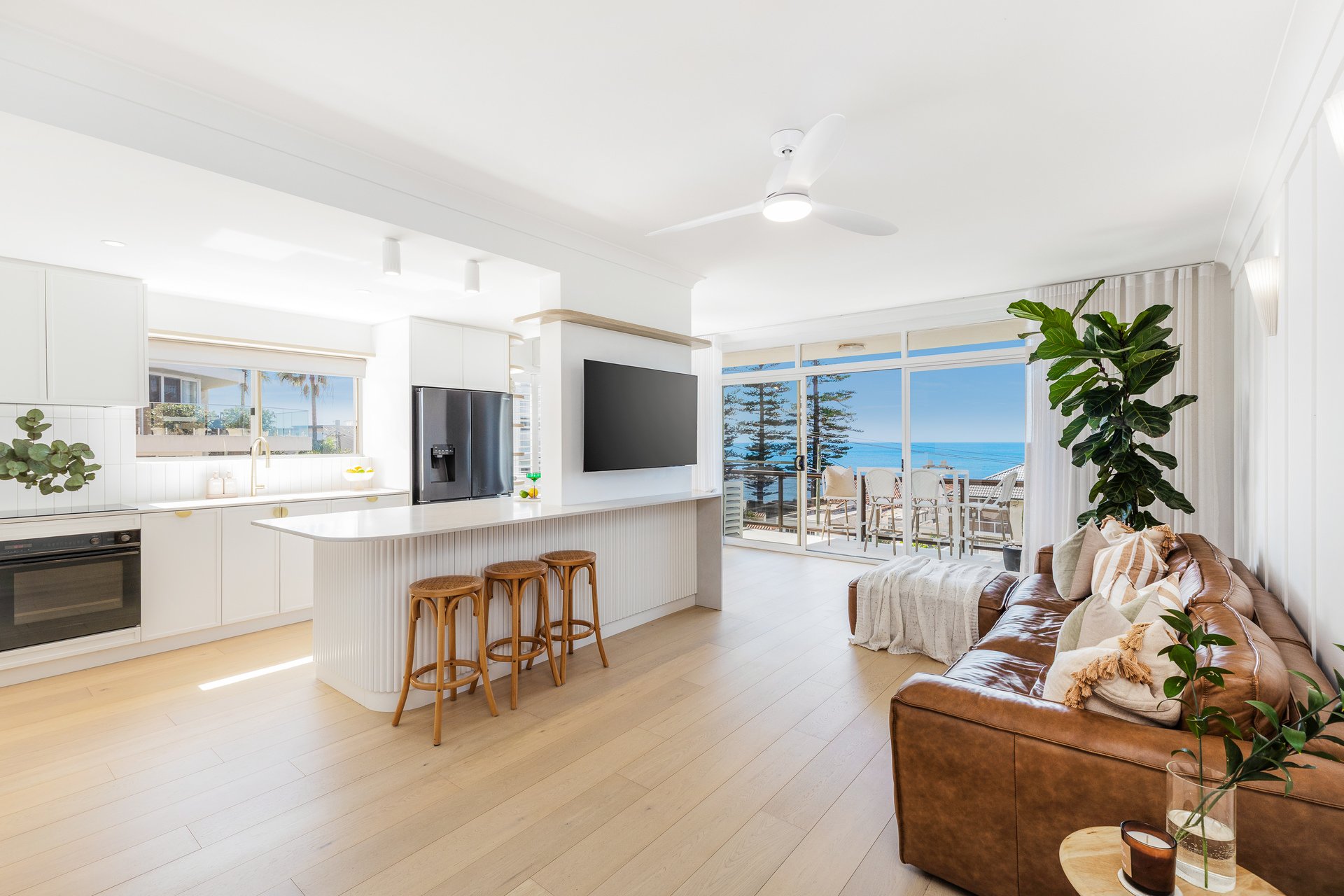 Positioned in one of Cronulla's most sought-after coastal settings, this impeccably renovated oceanside apartment presents a rare opportunity to enjoy a luxurious beachside lifestyle. Bathed in natural light, the stylish interiors feature high-end finishes and seamless indoor-outdoor flow, with floor-to-ceiling glass doors opening to a sun-soaked balcony offering sparkling water views.