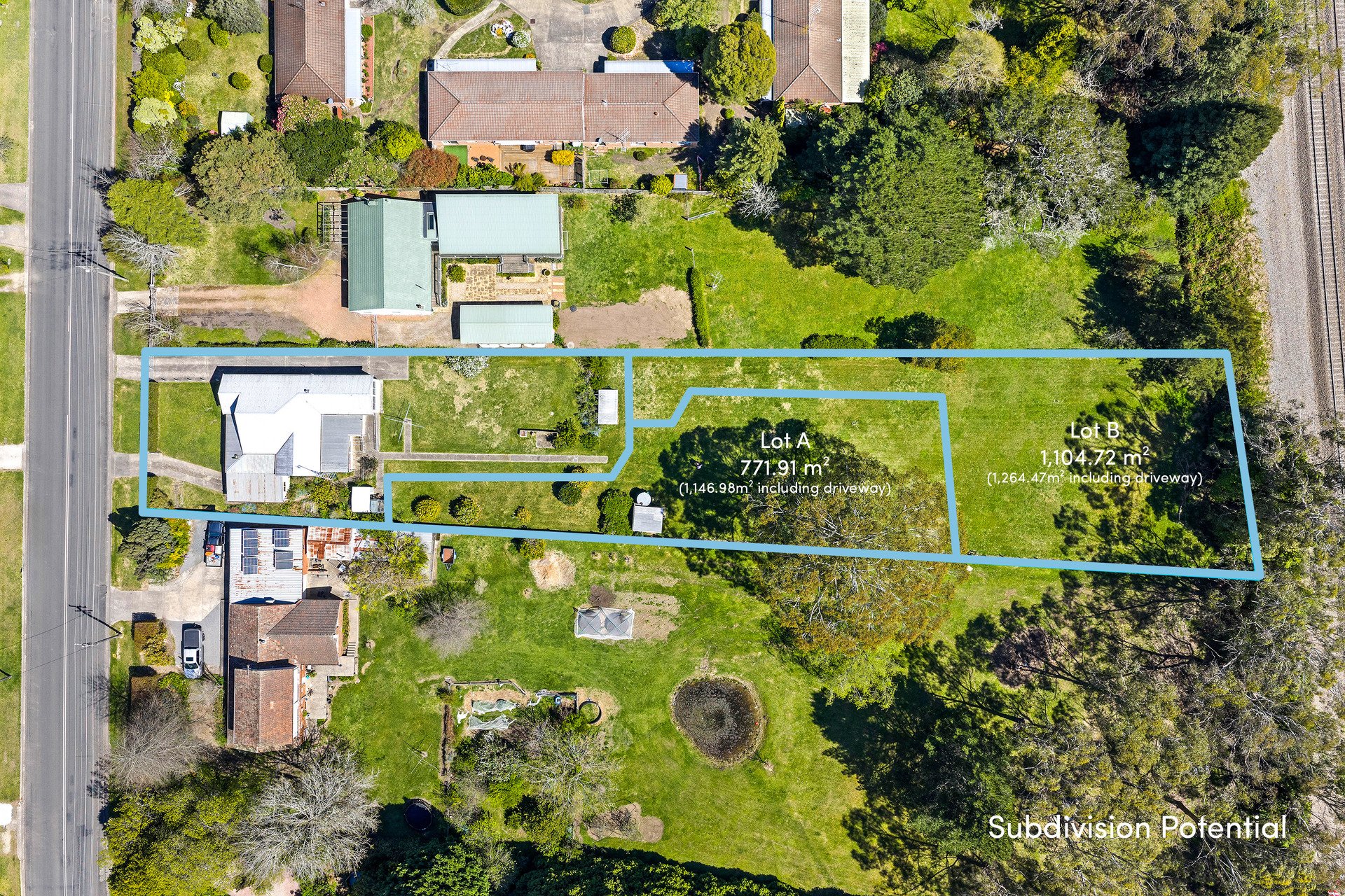 Behind the PVC cladding and the added garage lies a charming 1920 weatherboard home ready to be restored to its former glory. Featuring high ceilings, spacious rooms, a wide central hallway and a wraparound two-sided verandah, this grand old residence is just waiting to shine again. With character in abundance, it offers the perfect opportunity to create a stunning home that blends heritage with modern living. Set on an impressive 3,118sqm parcel with a Council-approved DA for a three-lot subdivision, this property offers outstanding long-term investment appeal. Thoughtfully designed, each block maximises northern sunlight for passive solar living, while the convenient location places you less than 700m from the railway station and town centre.