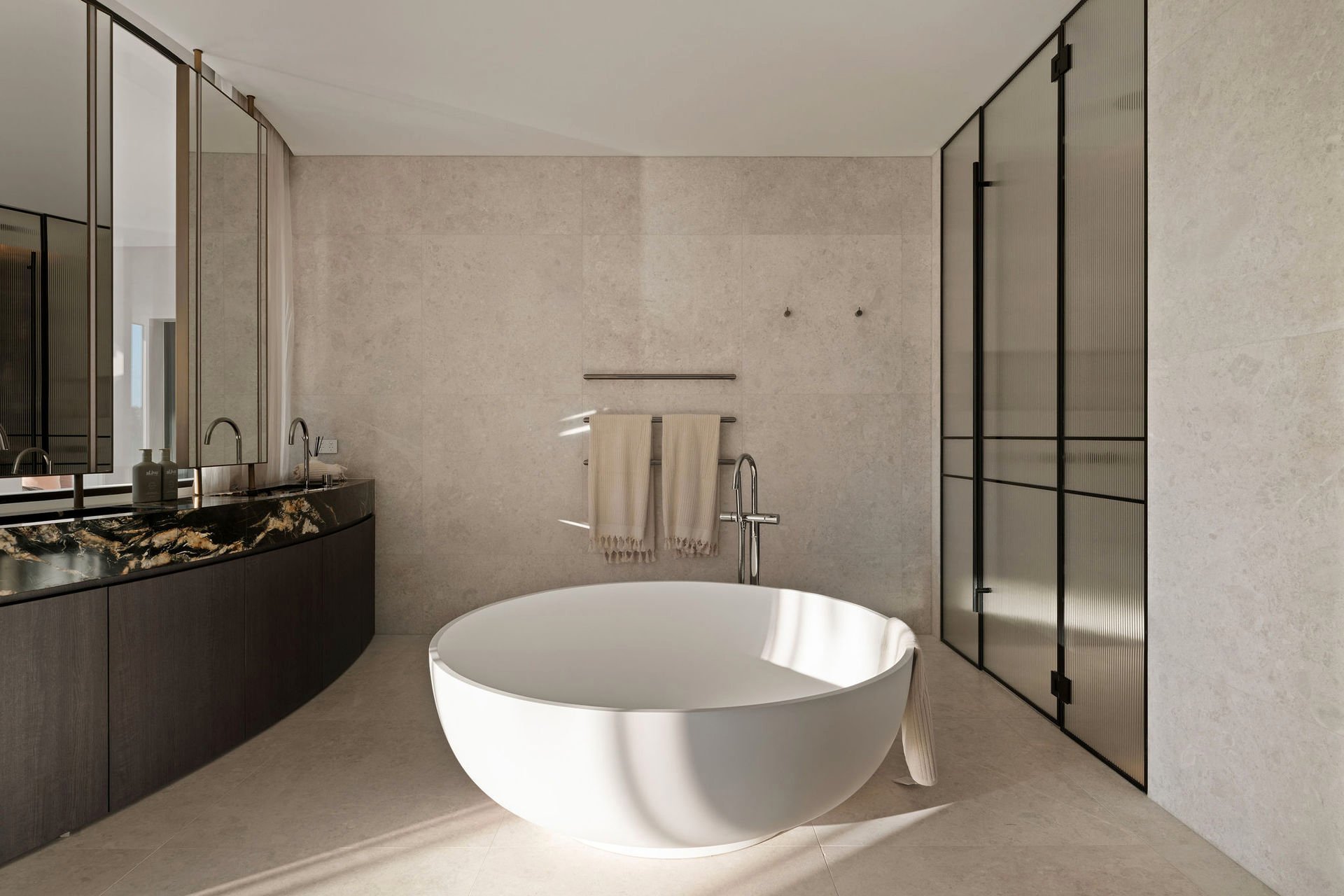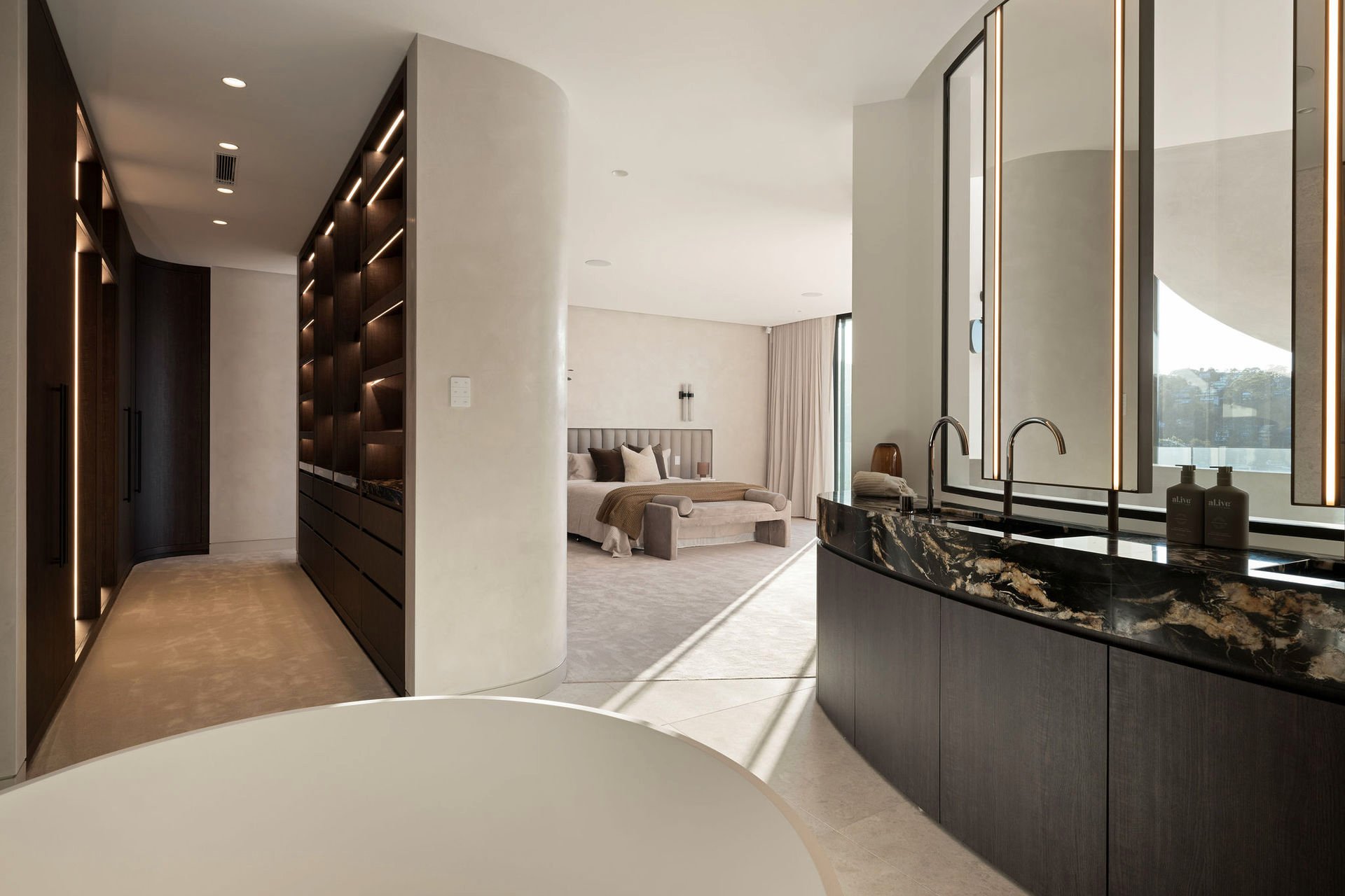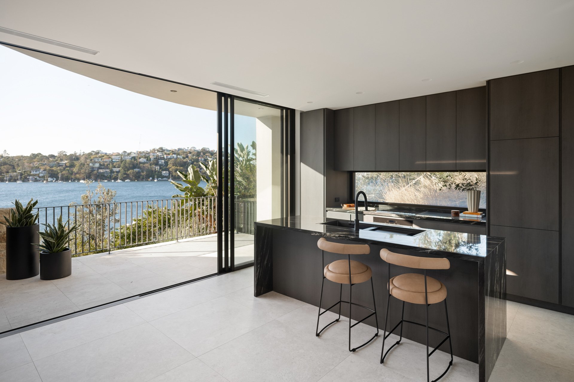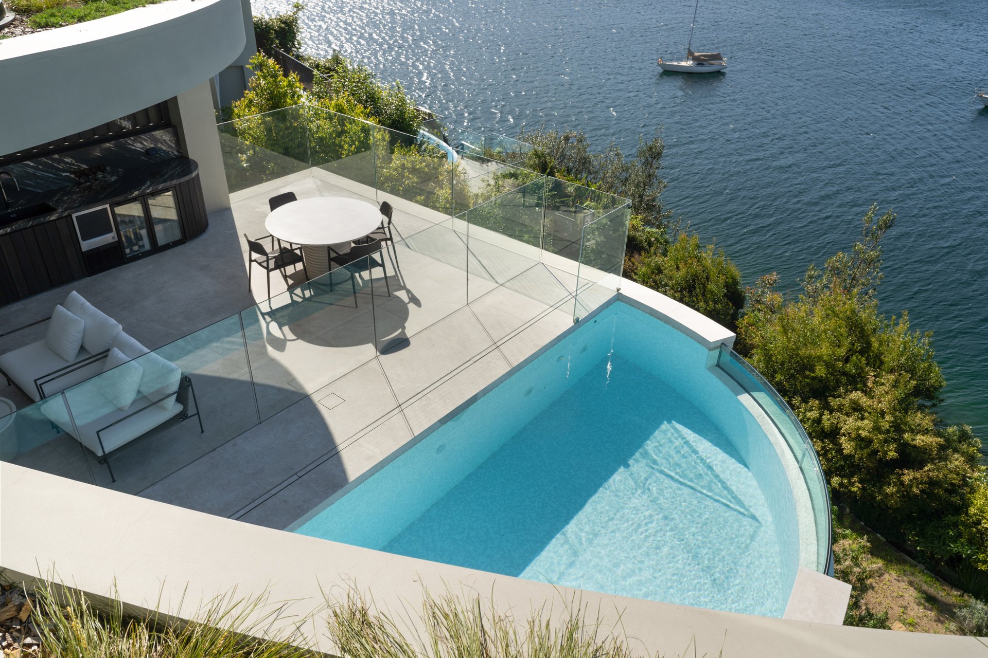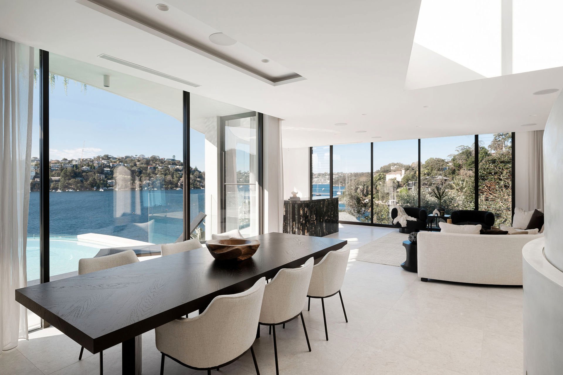 This brand-new waterfront home by Alchemy Architecture blends luxury and seclusion. Expansive glass panels capture breathtaking harbour views, while curved accents and sculptural elements add a unique touch. The double brick and concrete structure reflects Castlecrag's natural beauty, with a striking helical staircase as its centrepiece. Designed for lavish entertaining, the home features spacious living and dining areas, a terrace with a skylight, and an alfresco kitchen. The mosaic pool seamlessly merges with the harbour backdrop. The marble kitchen includes a butler's pantry and opens to a primary bedroom wing with an ensuite and circular tub, flowing onto the upper balcony. An internal lift, boatshed, entertainment room, gym with custom sauna, and a deluxe office/sixth bedroom complete the home. Situated on a tranquil block, it's close to city buses, top schools, and Castlecrag Village.