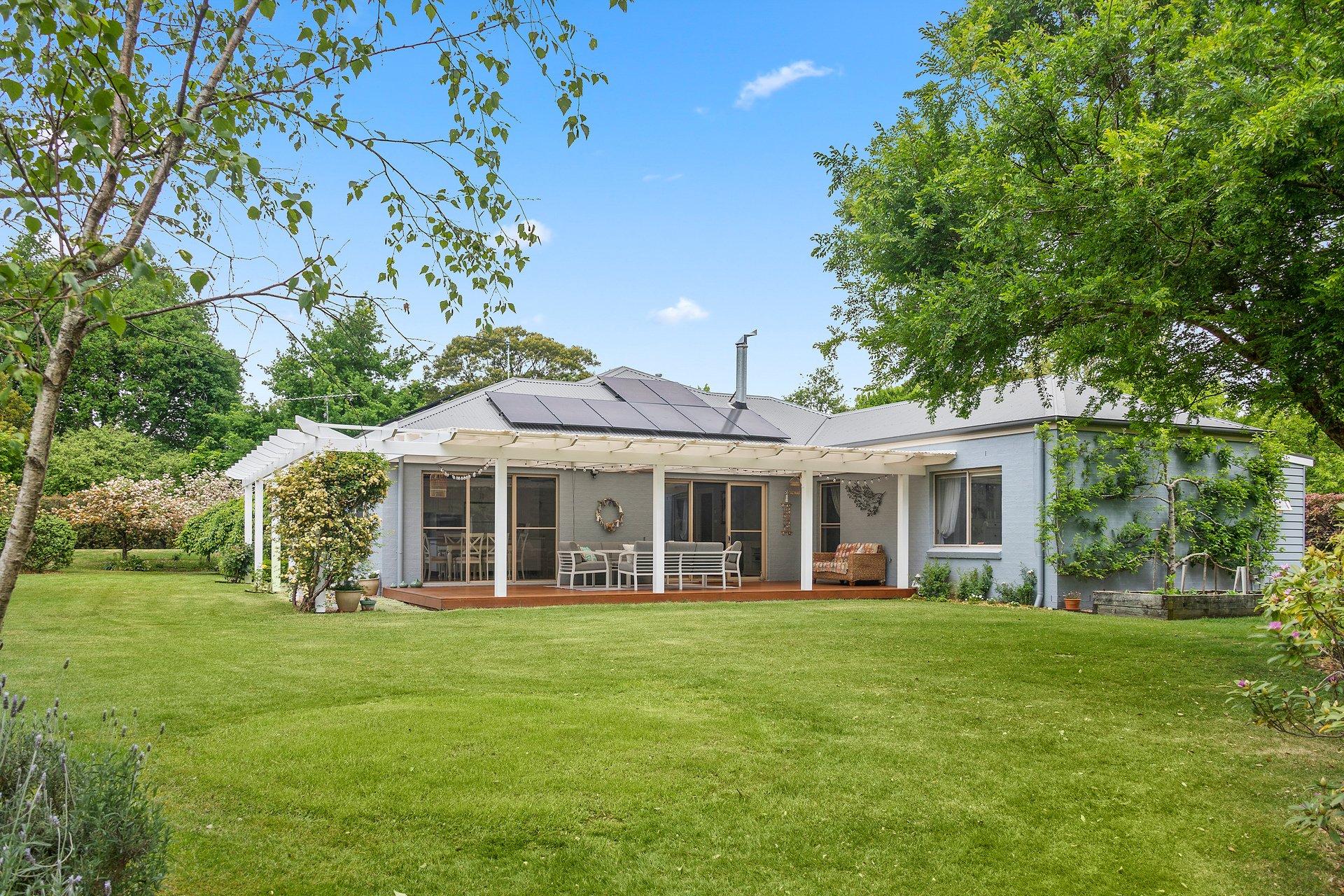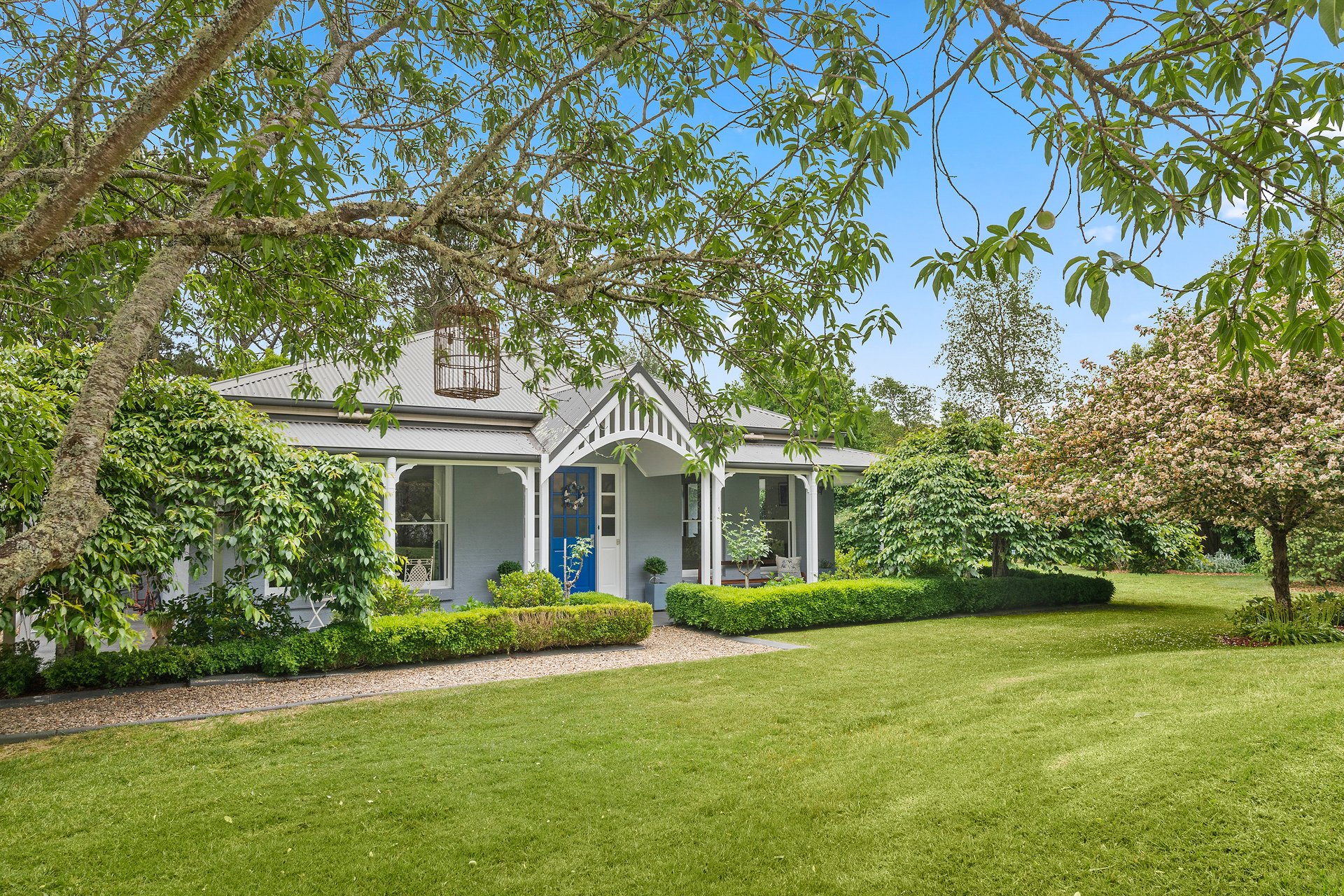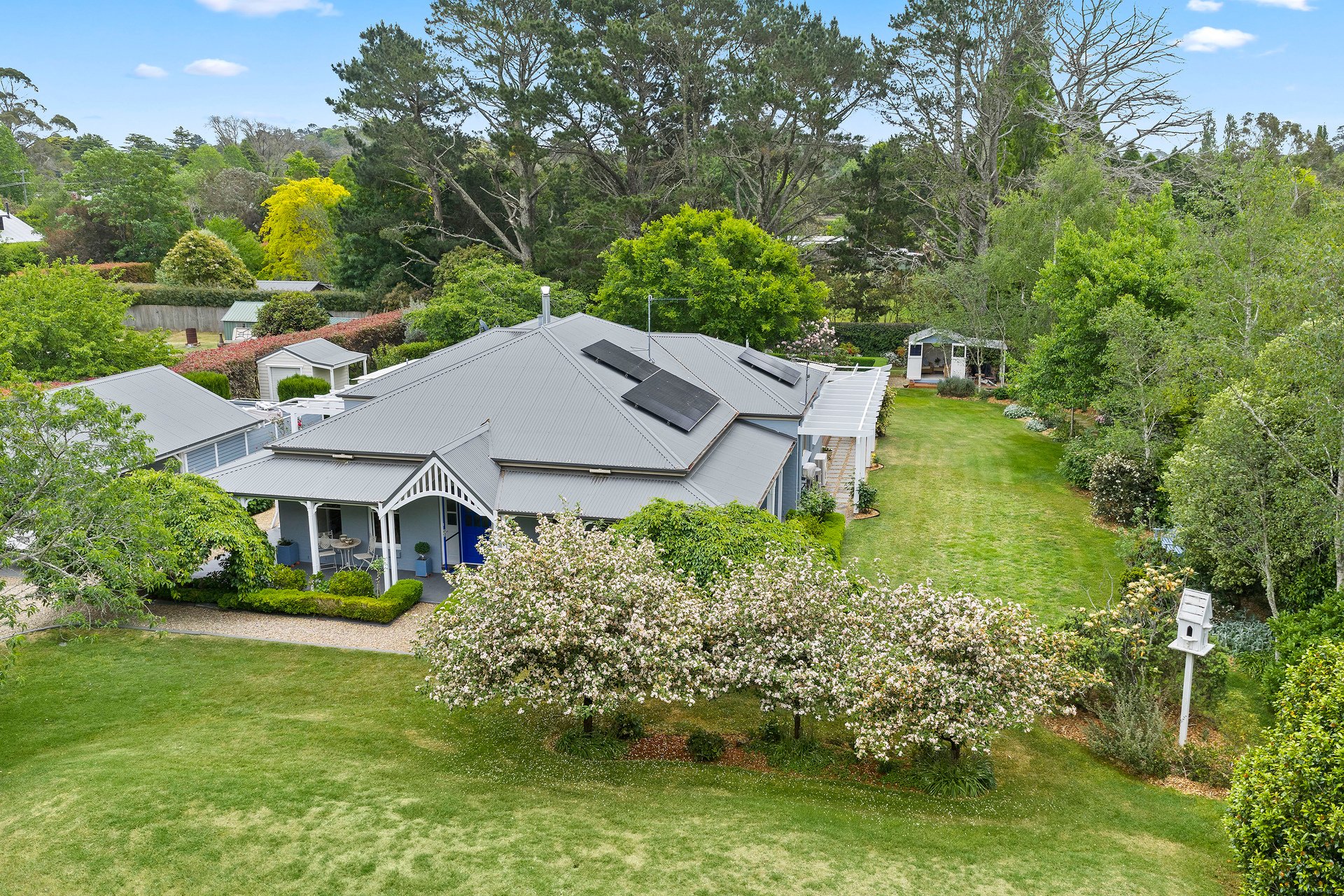 Tucked away in a peaceful country lane, this beautifully crafted home combines timeless cottage character with modern comfort. Surrounded by exquisite cool-climate gardens and framed by white post and rail fencing, it sits perfectly in its private setting behind mature hedges. The three-sided verandah and central front door create a welcoming, classic appeal. Inside, spacious living zones flow seamlessly from the elegant formal lounge to the open-plan kitchen, dining, and everyday living area. Glass sliding doors open to a large covered entertainer's deck overlooking manicured lawns and vibrant gardens. Every window frames a picturesque garden view, while thoughtful details throughout ensure comfort and practicality for family living.