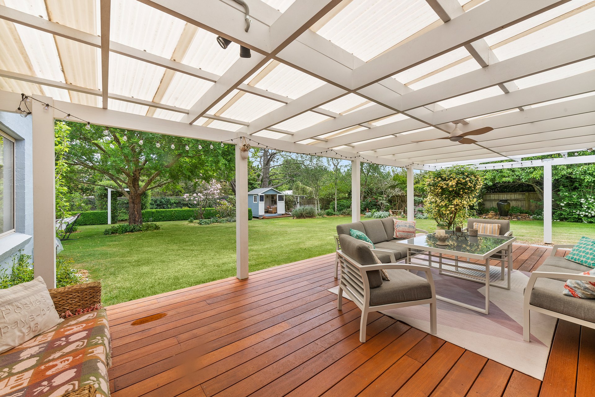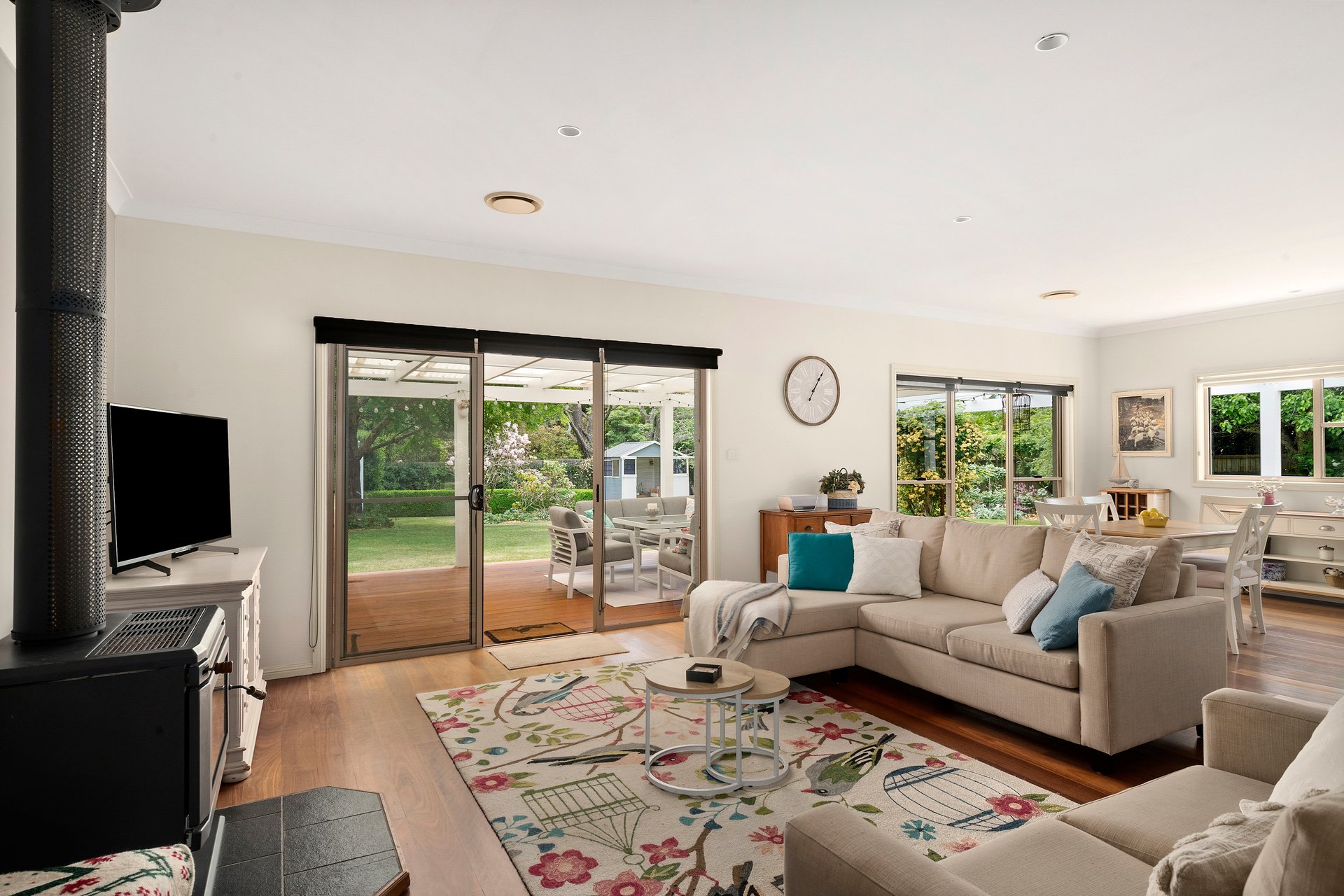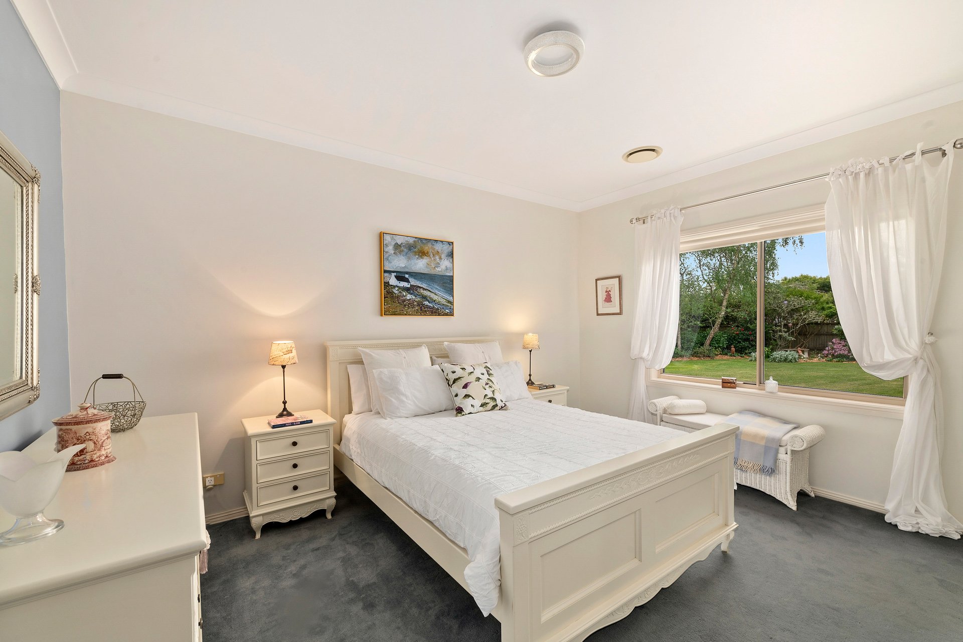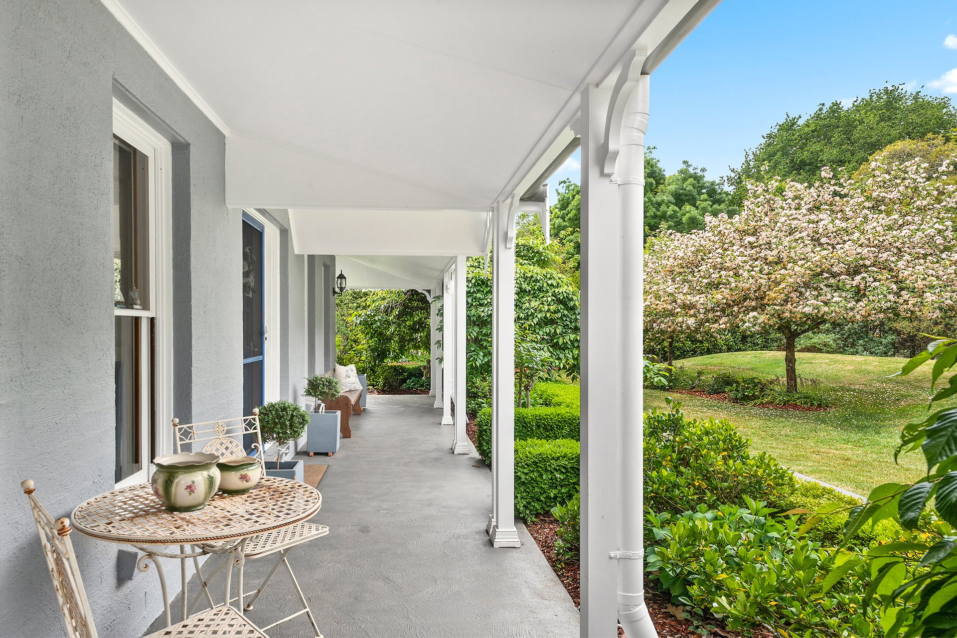 Tucked away in a peaceful country lane, this beautifully crafted home combines timeless cottage character with modern comfort. Surrounded by exquisite cool-climate gardens and framed by white post and rail fencing, it sits perfectly in its private setting behind mature hedges. The three-sided verandah and central front door create a welcoming, classic appeal. Inside, spacious living zones flow seamlessly from the elegant formal lounge to the open-plan kitchen, dining, and everyday living area. Glass sliding doors open to a large covered entertainer's deck overlooking manicured lawns and vibrant gardens. Every window frames a picturesque garden view, while thoughtful details throughout ensure comfort and practicality for family living.