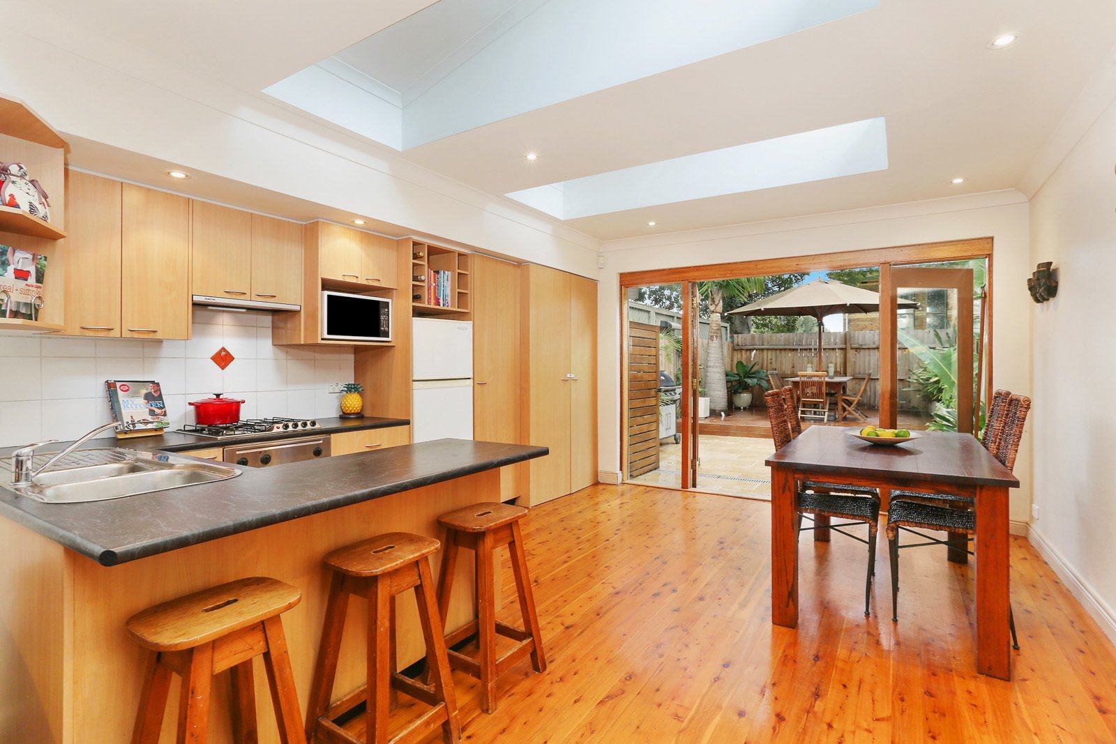 Warm and welcoming and brimming with character, this home features a spacious layout. The fluid indoor-outdoor layout connects open-plan living and dining spaces with a sunny patio and private deck, perfect for entertaining