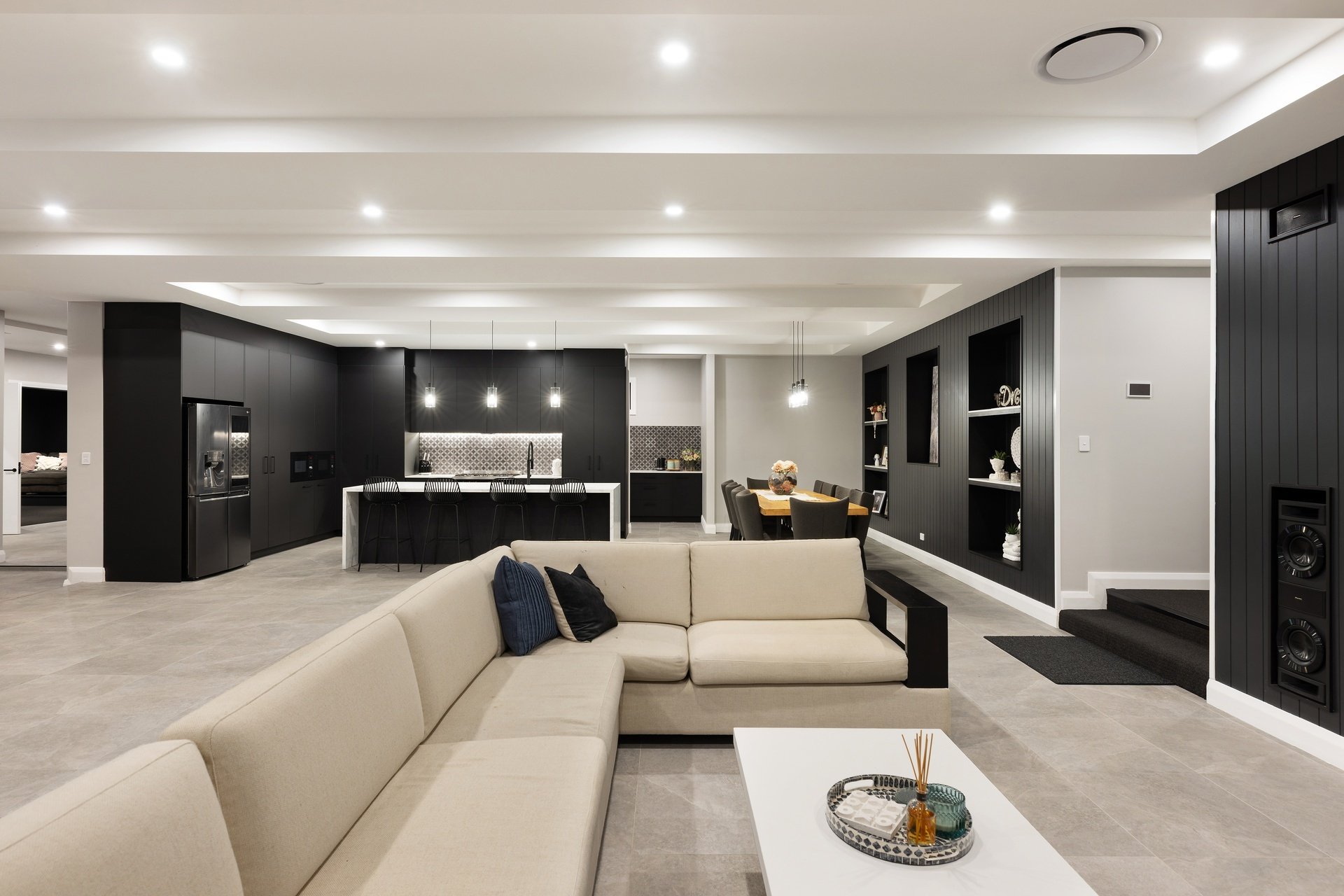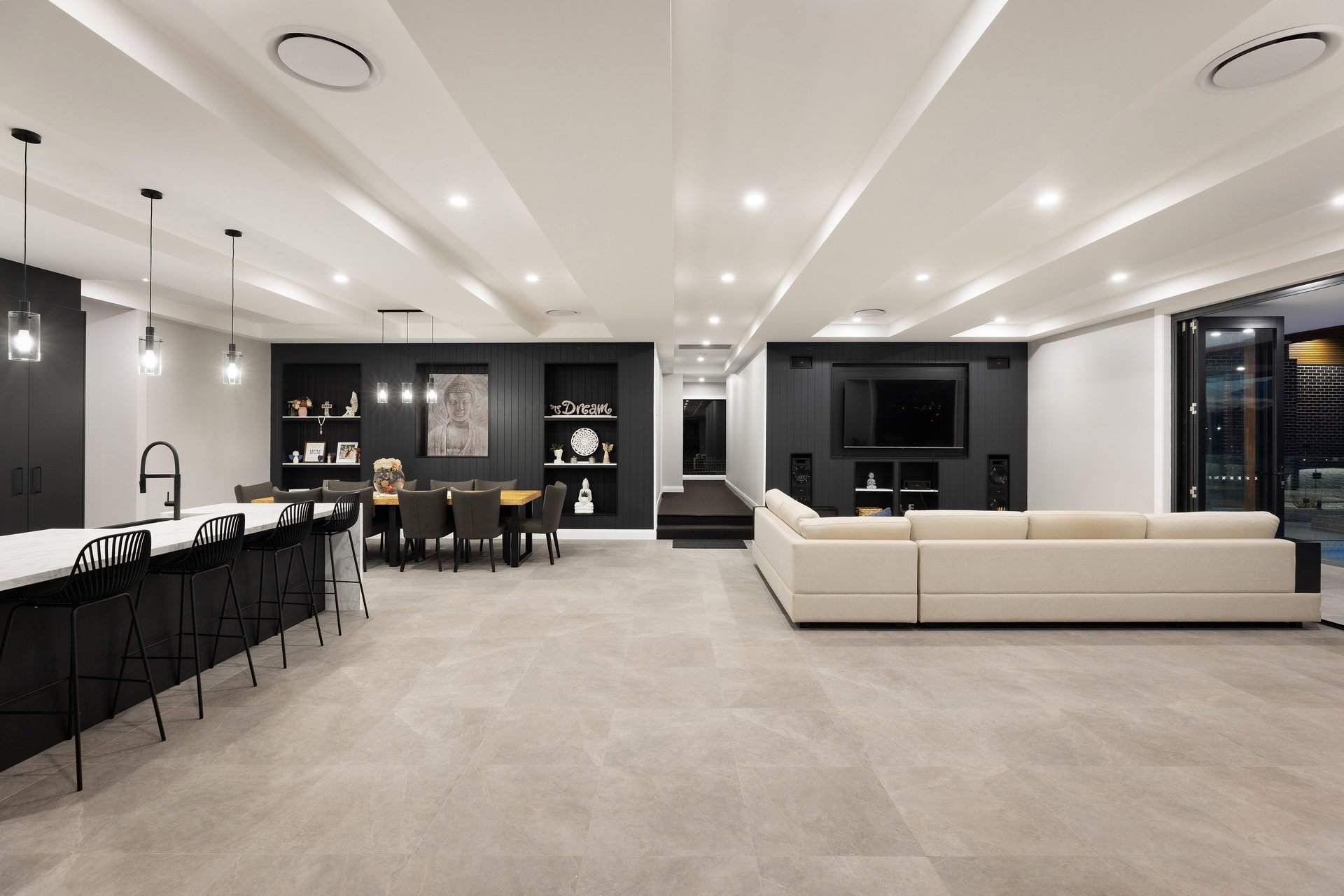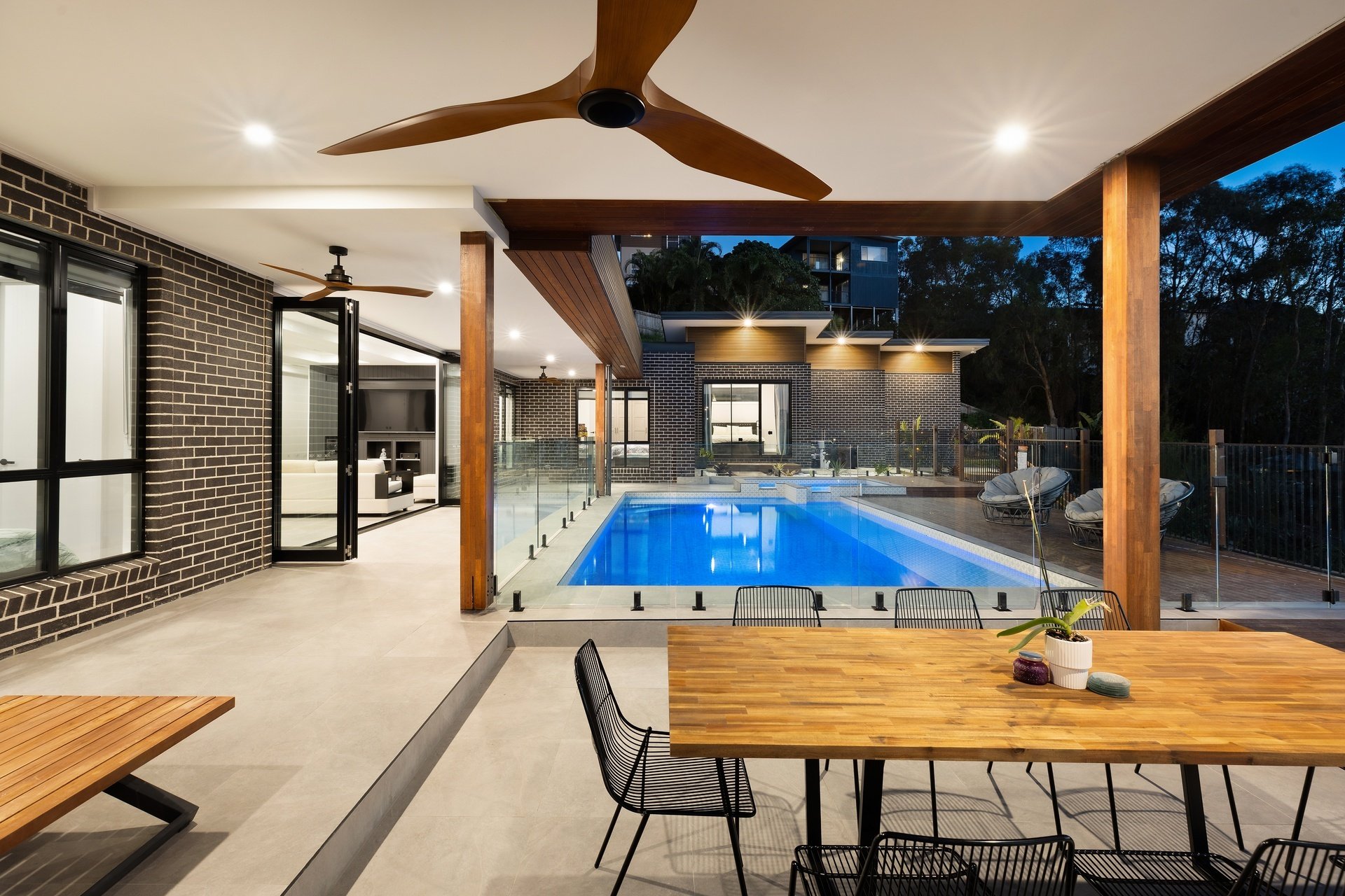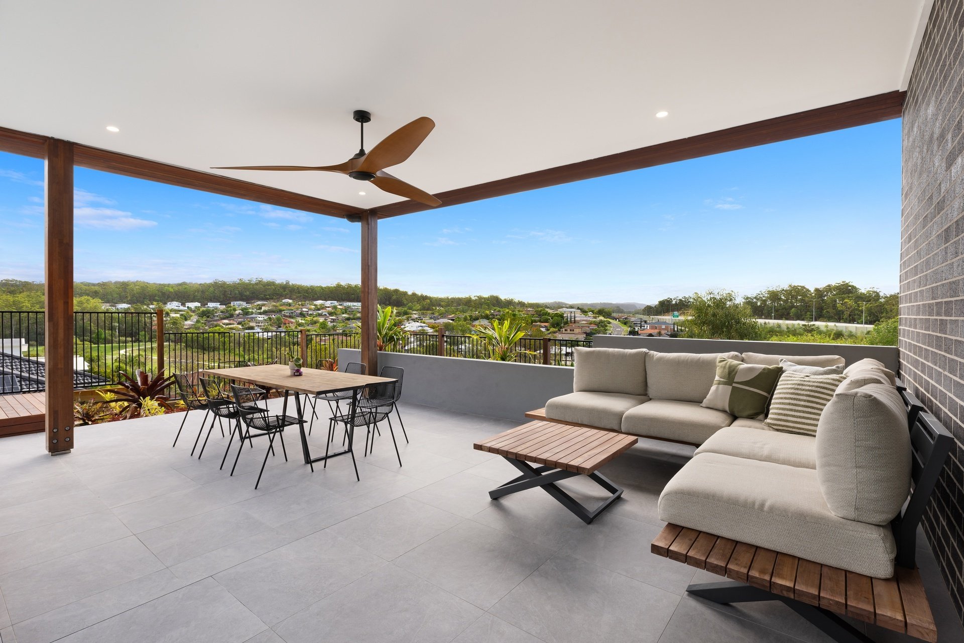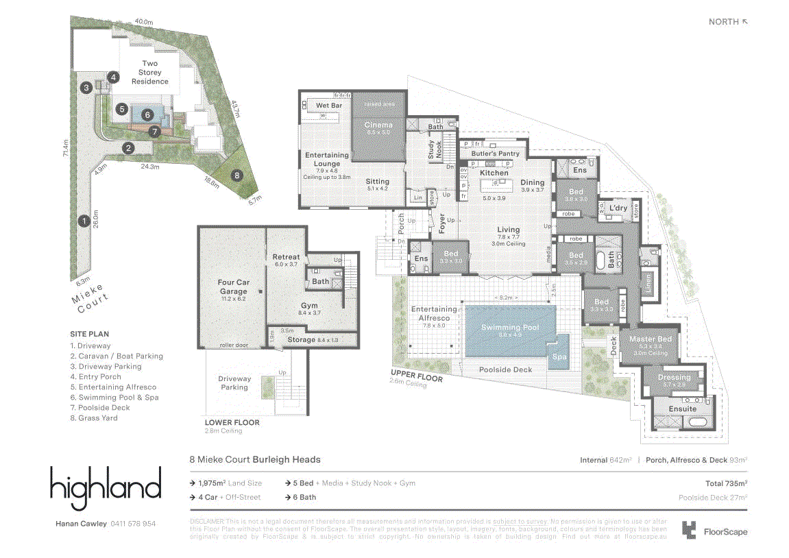 Showcasing sweeping treetop and coastline views from its exclusive ridgetop position, this brand-new Burleigh Heads residence combines striking architectural design with the effortless flow of single-level living. Set on a sprawling 1,975sqm block, the home delivers over 735sqm of indulgent interiors, where bold modern lines meet warm natural textures to create a home of rare refinement. At its heart, a statement kitchen anchors the open plan living domain, featuring a vast island bench, high-end appliances, and a full butler's pantry. Generous dining and lounge zones unfold to a covered alfresco terrace, where timber detailing, ceiling fans and a heated mineral pool with spa invite resort-style relaxation. The master suite offers a sanctuary of scale and sophistication with a walk-in robe and luxe ensuite, while four additional bedrooms each enjoy their own bathroom access and built-in robes. Purpose-built for entertaining, the home includes a pool lounge and bar including a second kitchen, dedicated theatre room, and a fully equipped gym. This brand-new build offers the perfect Dual living option. Every detail is considered - from acoustically rated glazing and soaring 3m ceilings to multi-zoned ducted air and abundant storage throughout. With its seamless indoor-outdoor integration, elevated outlooks and grand proportions, this prestige residence epitomises Burleigh's modern luxury lifestyle.