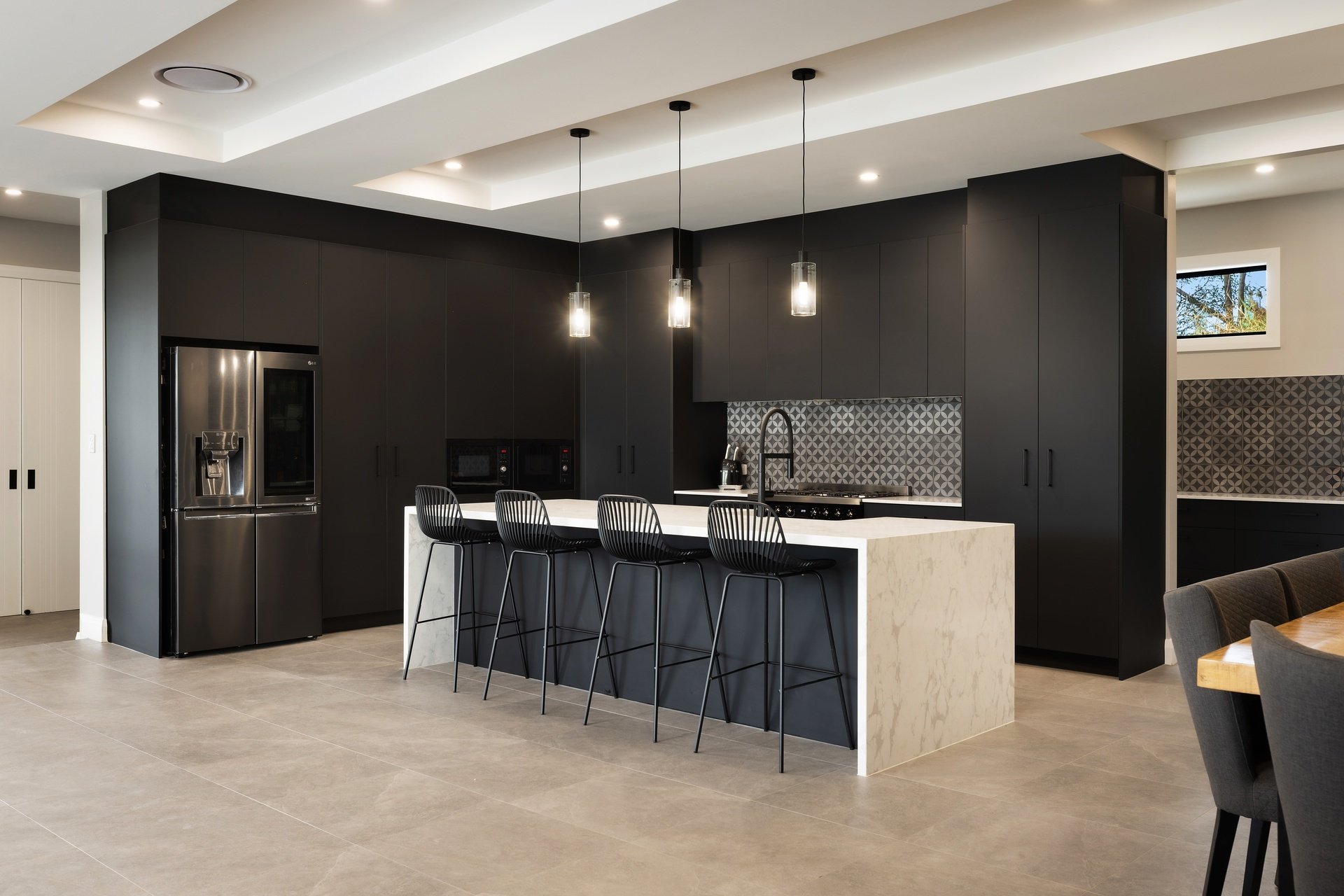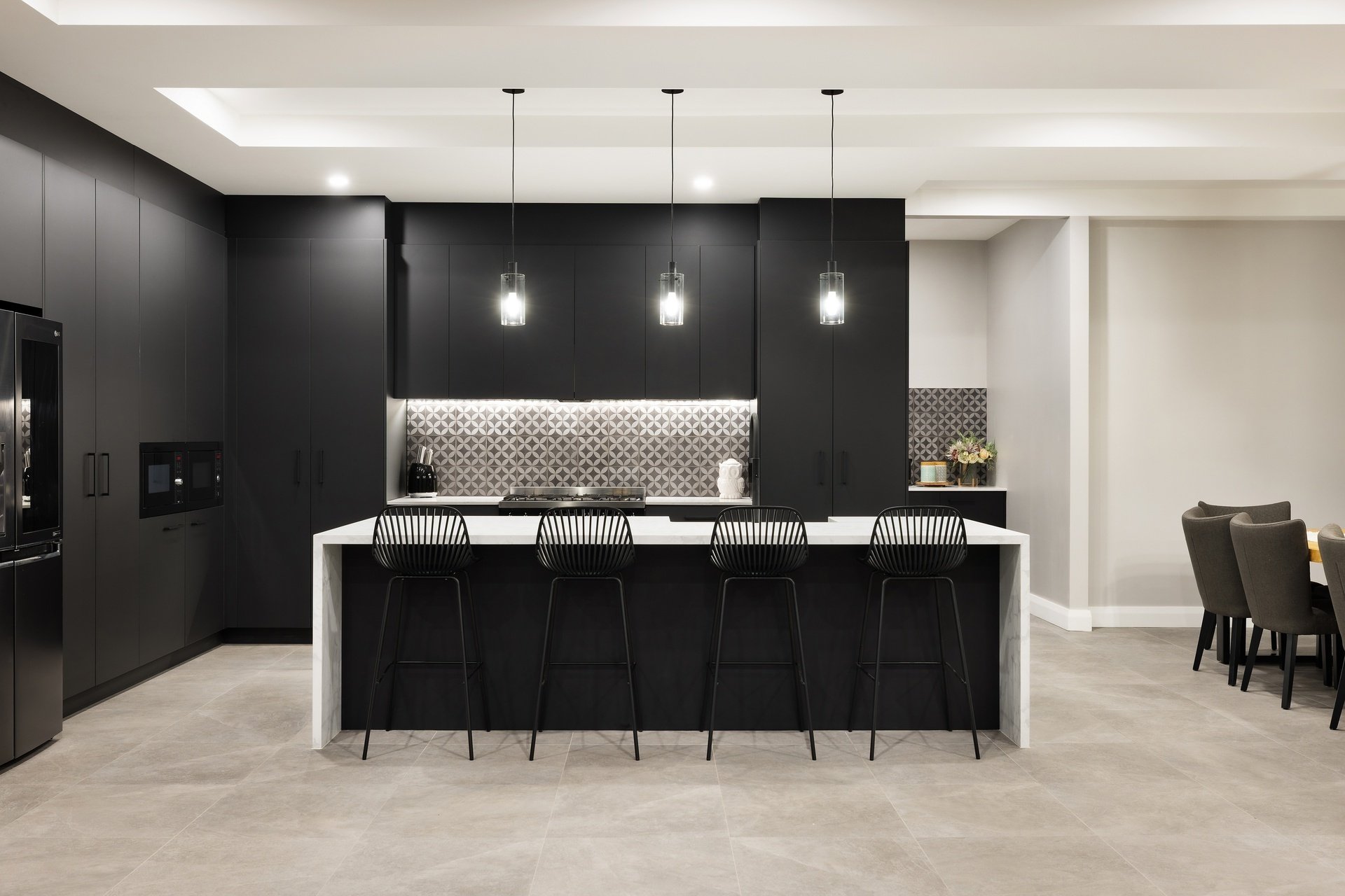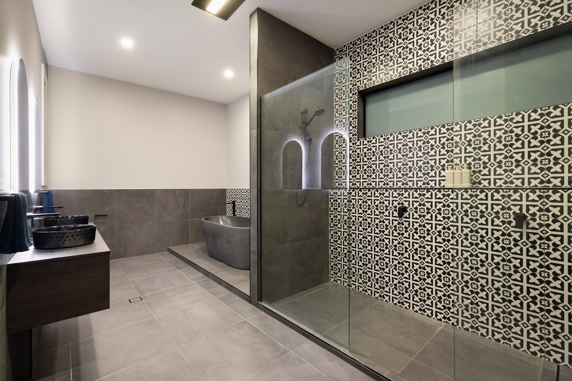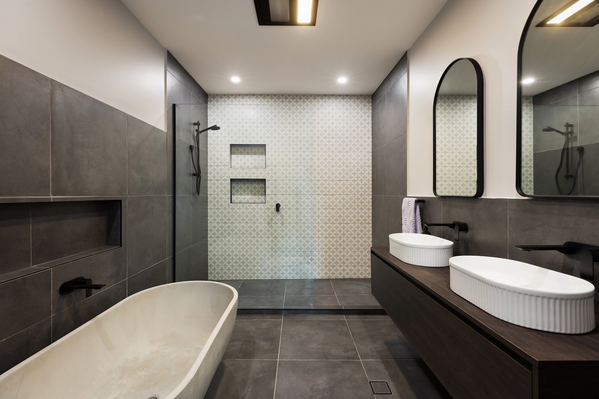Showcasing sweeping treetop and coastline views from its exclusive ridgetop position, this brand-new Burleigh Heads residence combines striking architectural design with the effortless flow of single-level living. Set on a sprawling 1,975sqm block, the home delivers over 735sqm of indulgent interiors, where bold modern lines meet warm natural textures to create a home of rare refinement. At its heart, a statement kitchen anchors the open plan living domain, featuring a vast island bench, high-end appliances, and a full butler's pantry. Generous dining and lounge zones unfold to a covered alfresco terrace, where timber detailing, ceiling fans and a heated mineral pool with spa invite resort-style relaxation. The master suite offers a sanctuary of scale and sophistication with a walk-in robe and luxe ensuite, while four additional bedrooms each enjoy their own bathroom access and built-in robes. Purpose-built for entertaining, the home includes a pool lounge and bar including a second kitchen, dedicated theatre room, and a fully equipped gym. This brand-new build offers the perfect Dual living option. Every detail is considered - from acoustically rated glazing and soaring 3m ceilings to multi-zoned ducted air and abundant storage throughout. With its seamless indoor-outdoor integration, elevated outlooks and grand proportions, this prestige residence epitomises Burleigh's modern luxury lifestyle.