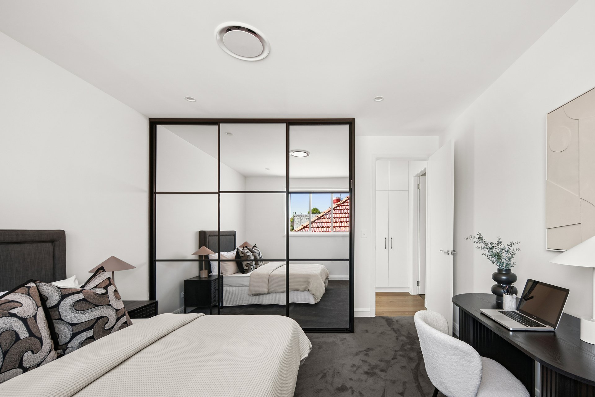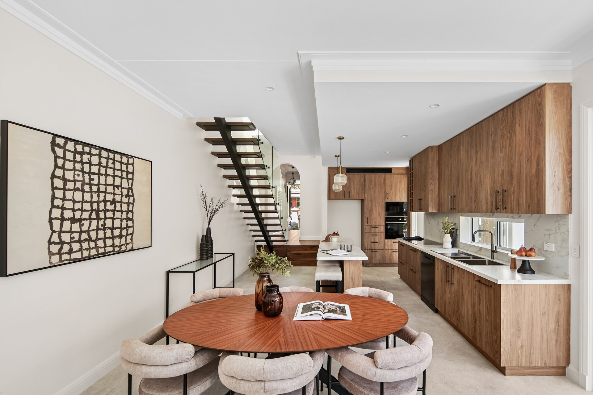 Standing proud with an impressive 8.38m frontage, this newly built four-bedroom Victorian home brings a touch of contemporary warmth and leading craftsmanship to the historic Llewellyn Estate. Each gorgeous detail has been intentionally curated with a well-demonstrated attention to detail from the gold-veined marble island kitchen with a suite of premium appliances to the luxe stone bathrooms with European finishes. Complete with a saltwater chlorinated pool at the rear that soaks in north facing sunshine, this home is perfectly nestled in a quiet pocket just on the cusp of Marrickville within easy walking distance to Enmore Park and Enmore Road's world of eats, bars and the Metro shopping centre.