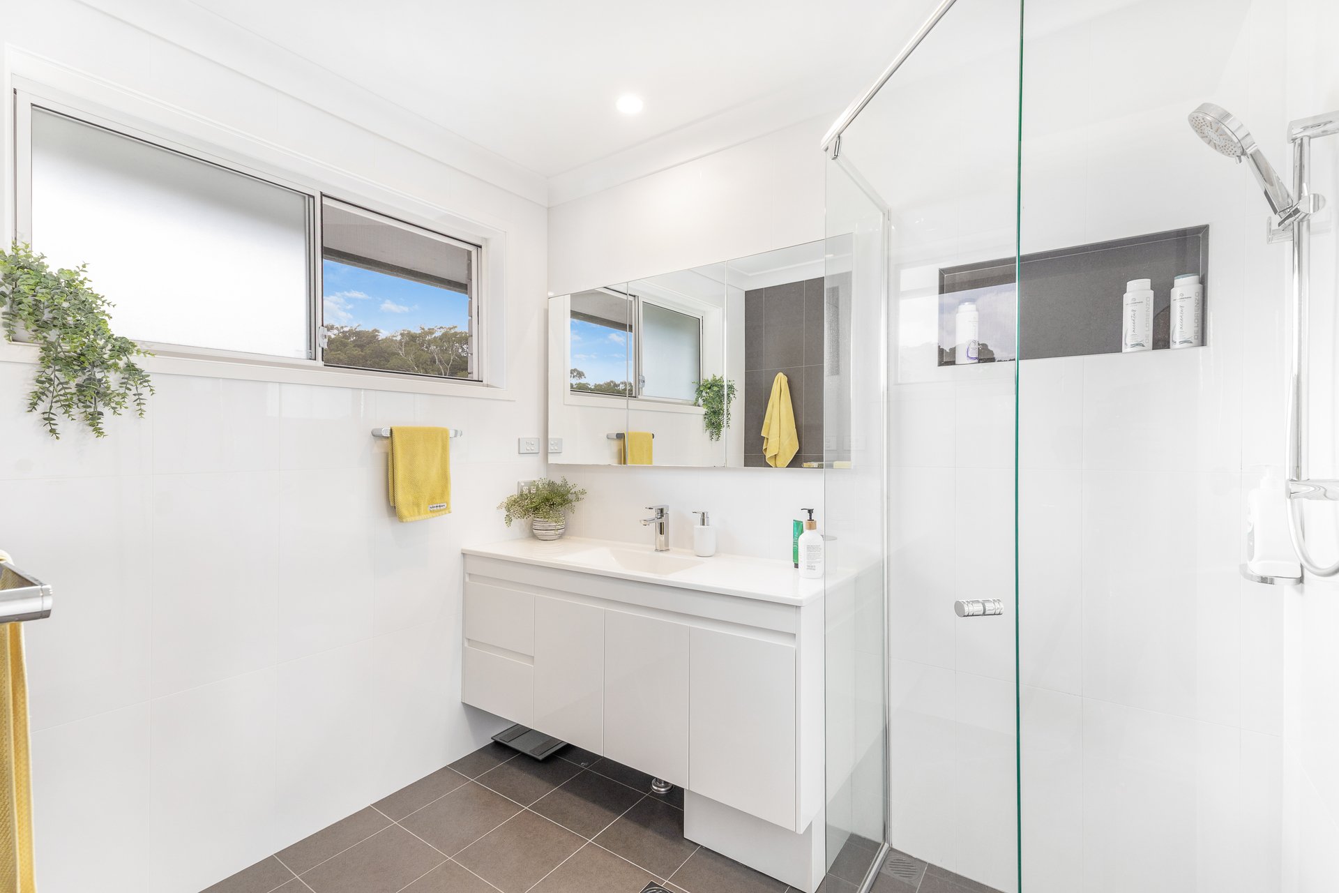 Renovated main bathroom with modern finishes and a separate toilet