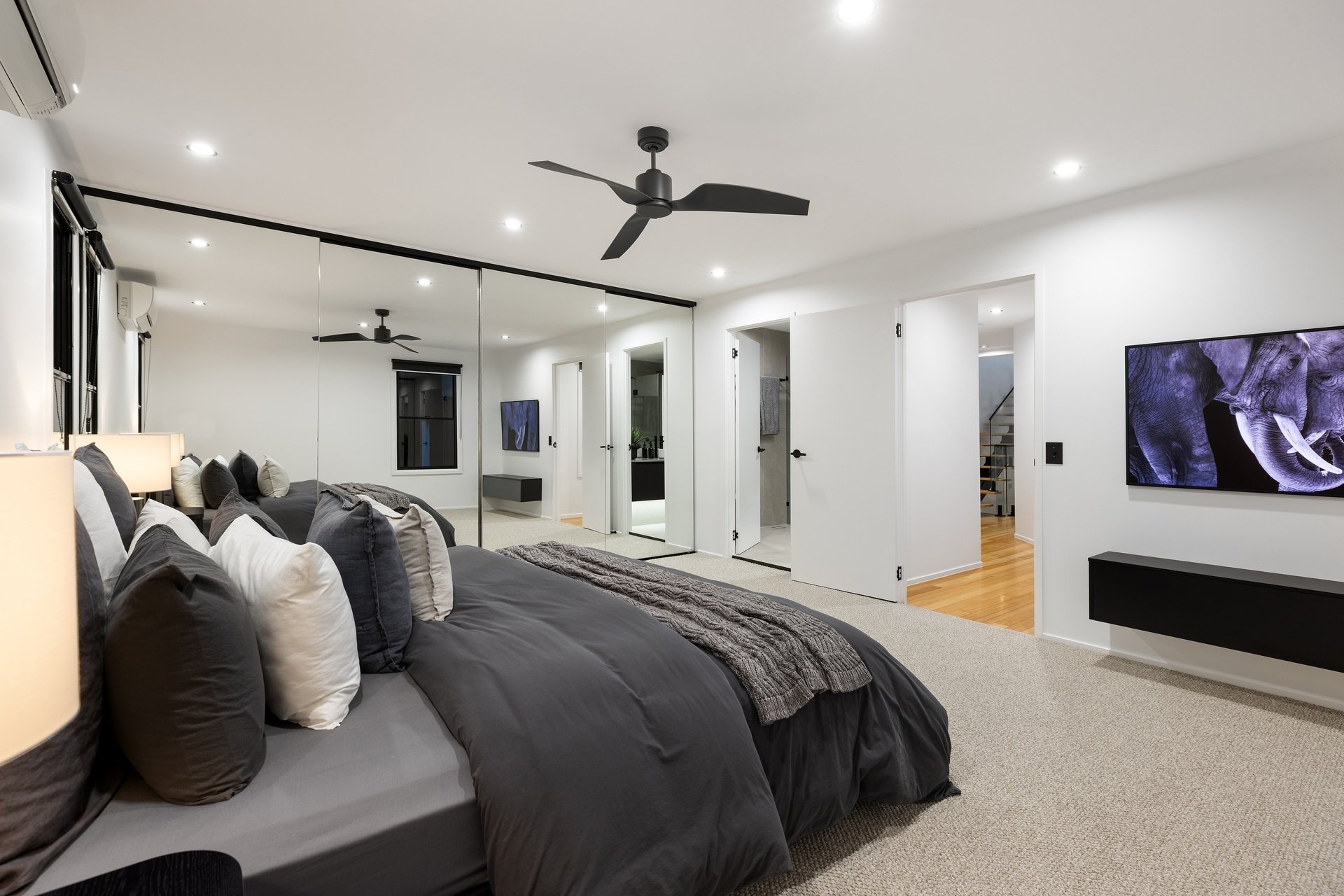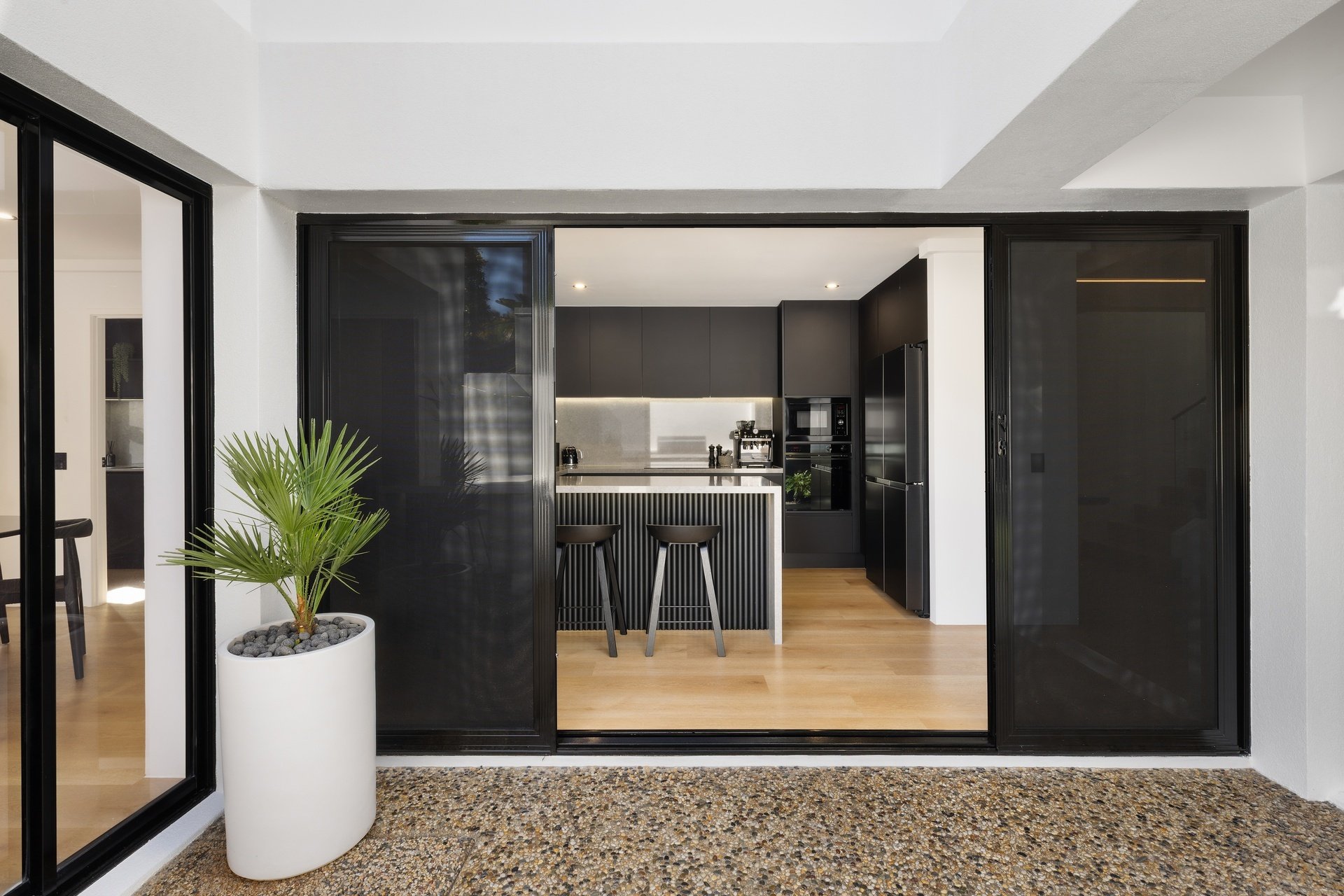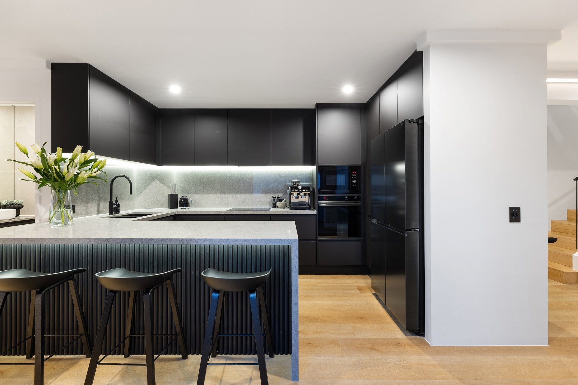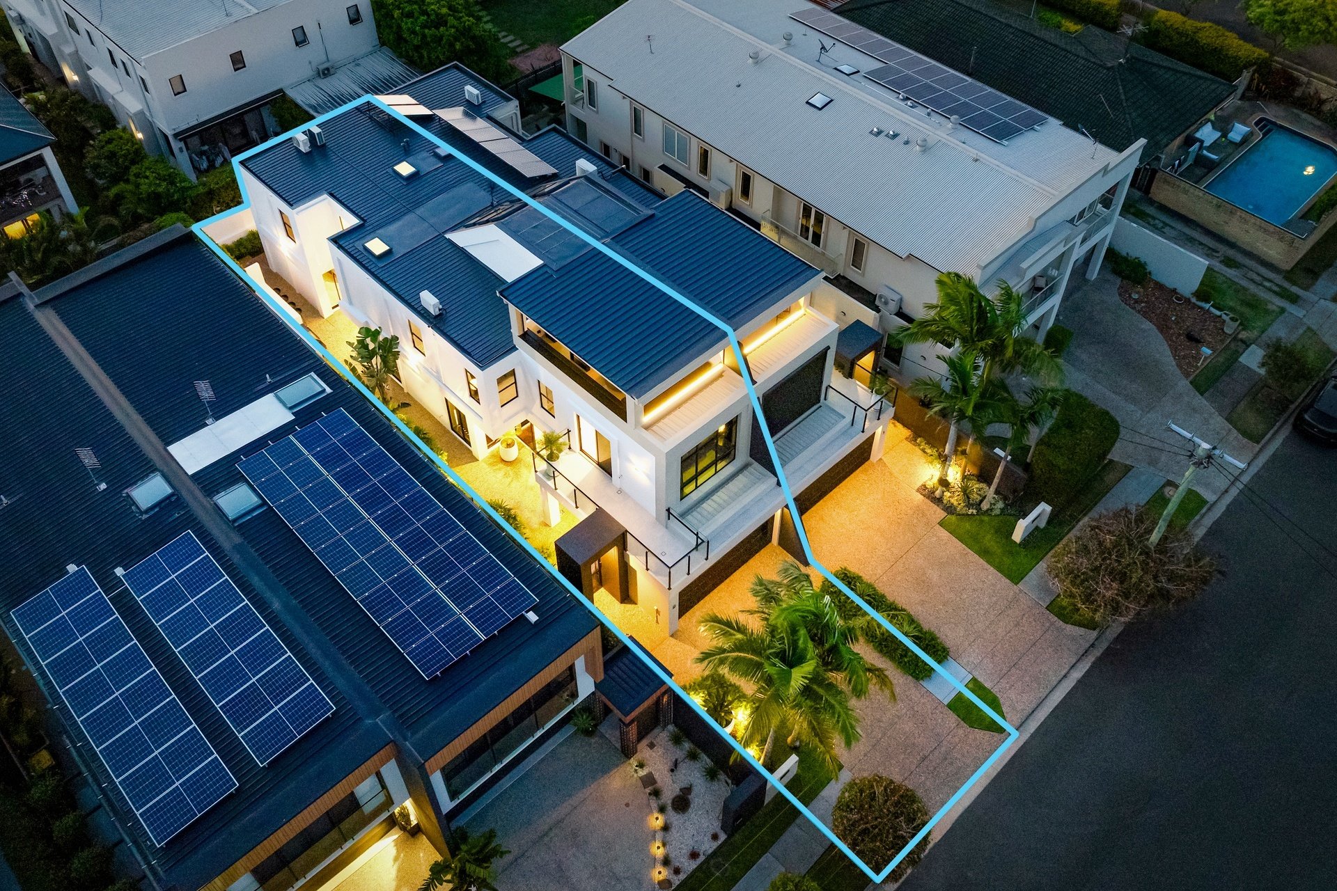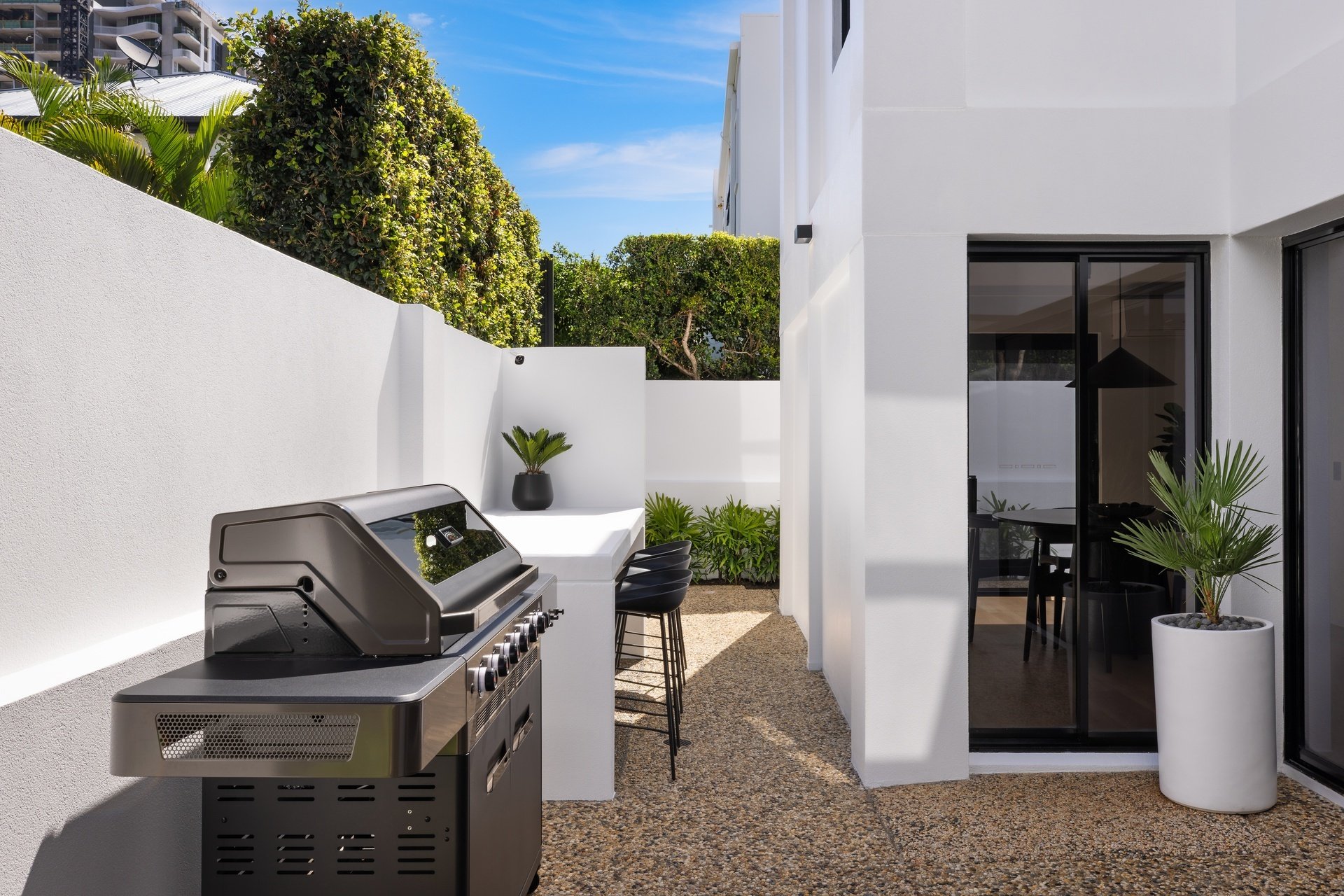 Impeccably renovated to an elite standard, this tri-level villa delivers rare scale, sophistication and privacy within the Chevron Island lifestyle precinct. Spanning an expansive 332sqm, it offers house-like proportions with refined interiors showcasing polished natural hardwood floors, custom fingerprint-resistant matte black cabinetry, full Caesarstone finishes and abundant natural light via skylights and tinted glass. The open plan kitchen, living and dining zone forms the heart of the home, anchored by a striking designer kitchen with 40mm Caesarstone waterfall benchtops and premium European appliances, flowing seamlessly to a private courtyard. Crowning the residence, a showpiece roof terrace captures sweeping city skyline views and provides an exceptional setting for elevated entertaining, enhanced by ambient lighting and retractable privacy screening. A flexible lower-level multipurpose zone adds versatility as a home office, media room or guest retreat. Three oversized bedrooms include an opulent master with walk-through robe and luxe ensuite, while secure garaging for two vehicles completes this exceptional, low-maintenance residence. Positioned within the tightly held Chevron Island enclave, this address places beaches, cafés, boutique dining and village shopping within walking distance, with HOTA, Surfers Paradise and major transport links just minutes away.