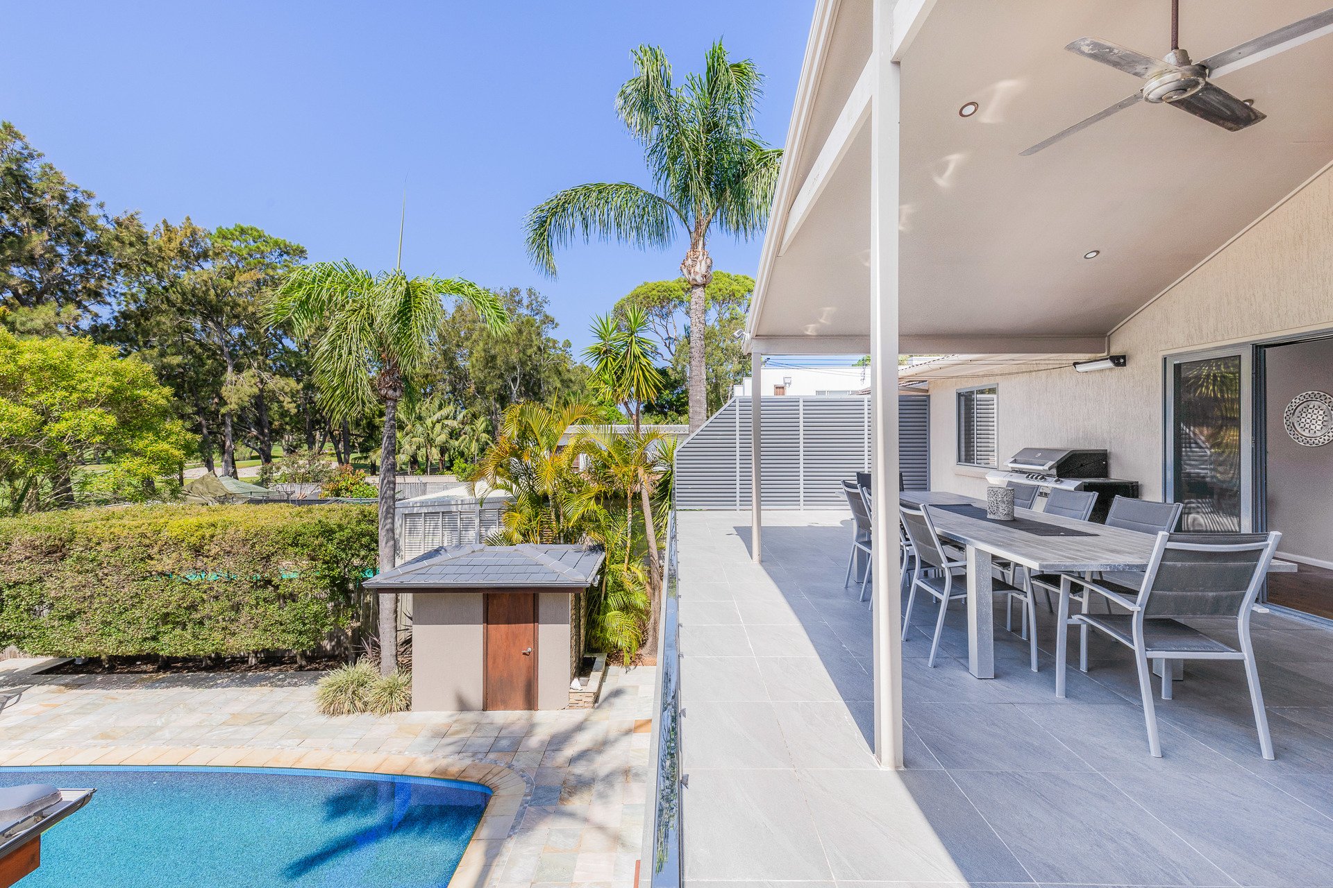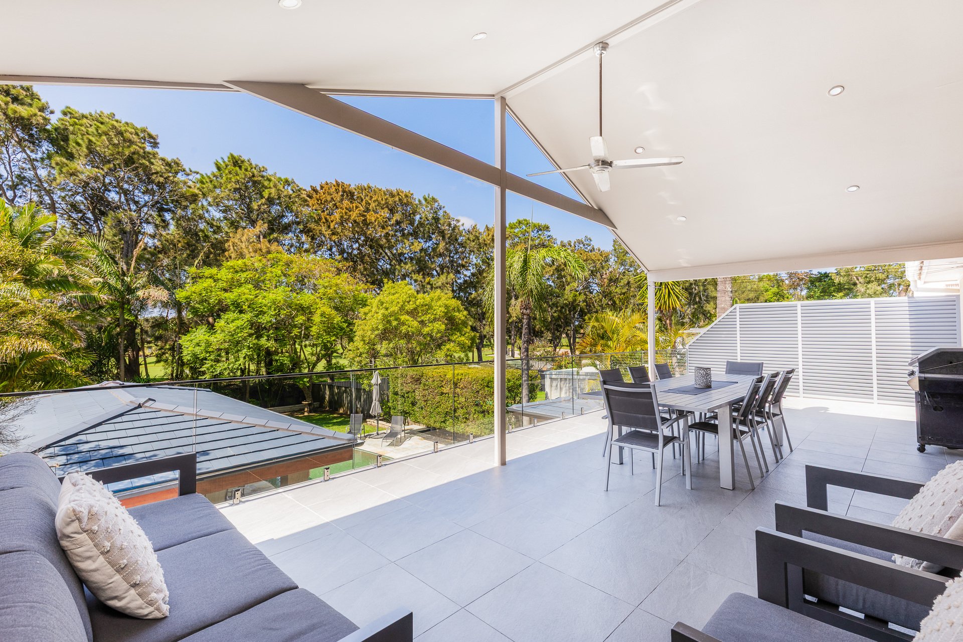 Set in one of Cronulla's most sought-after locales, this private north-facing residence captures the essence of relaxed coastal living while delivering the perfect family haven. Positioned on an expansive 872sqm (approx.) parcel, the property enjoys serene, elevated views over Cronulla Golf Course, offering a rare combination of outlook, lifestyle, and convenience. Thoughtfully designed with a functional layout, the home blends effortless indoor/outdoor flow with multiple living and entertaining zones, perfectly catering to the needs of growing families and creating an inviting setting for year-round entertainment. Immaculately presented and ready to move in, this residence combines immediate comfort with future potential to enhance or redevelop in a prized north-facing golf course setting, just moments from the shores of Elouera Beach.