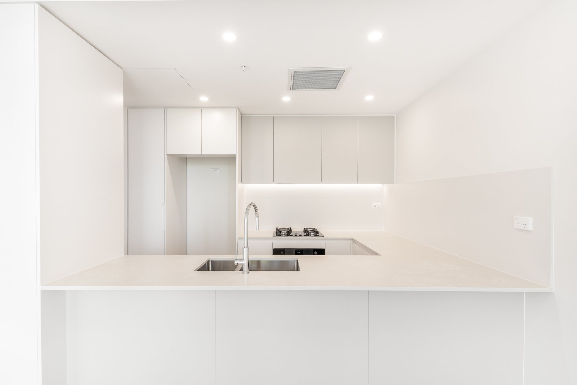 • ‐ Gourmet kitchen boasts Cloudburst Concrete Caesarstone benches and integrated Smeg appliances