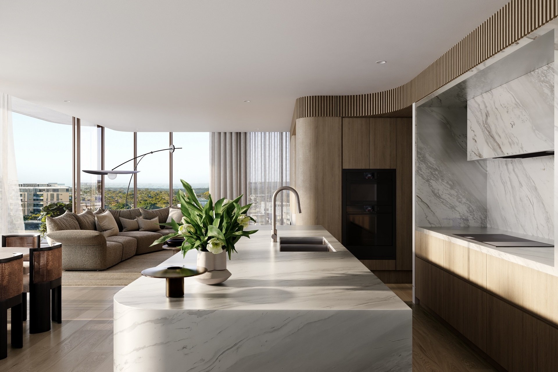 Spanning an incredible 181sqm - 339sqm, the penthouses feature expansive open plan interiors with seamless indoor–outdoor flow, elevated by a refined palette of timeless marble, hand-selected timber and artisan-crafted joinery. Sculptural kitchens, temperature-controlled wine cellars and wine fridges and marble-lined bathrooms transform everyday living into ritual, while resort-style wellness amenities extend the experience beyond the home. This is Cronulla from its most beautiful perspective, where every detail has been crafted for comfort, elegance and a lifestyle few will every experience.