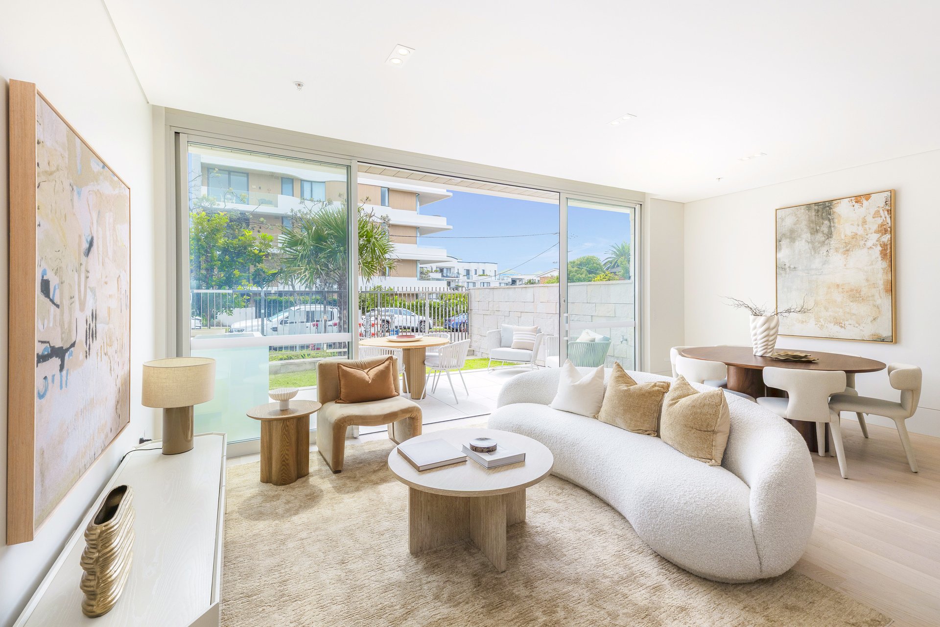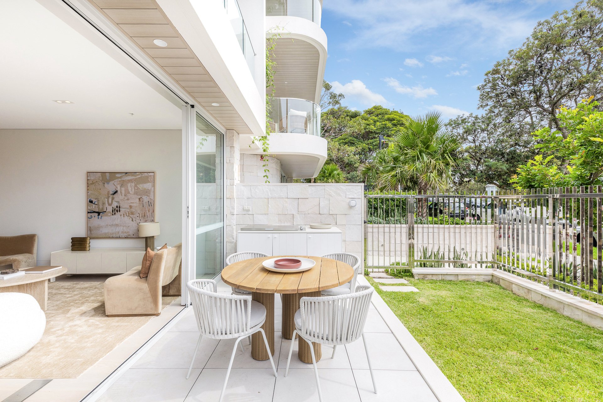 Proudly developed by Fiducia, with meticulous craftsmanship by D.velop.R, elegant interiors by Matters x Made, and innovative architecture by Couvaras Architects, this newly completed ground-floor apartment epitomises barefoot luxury in one of the most sought-after coastal locales. Nestled in the heart of Cronulla, this Mediterranean-inspired garden villa seamlessly blends coastal charm with modern sophistication. Thoughtfully crafted with timeless finishes and sun-filled interiors, this north-facing 3-bedroom residence includes two private courtyards and a dedicated study nook.