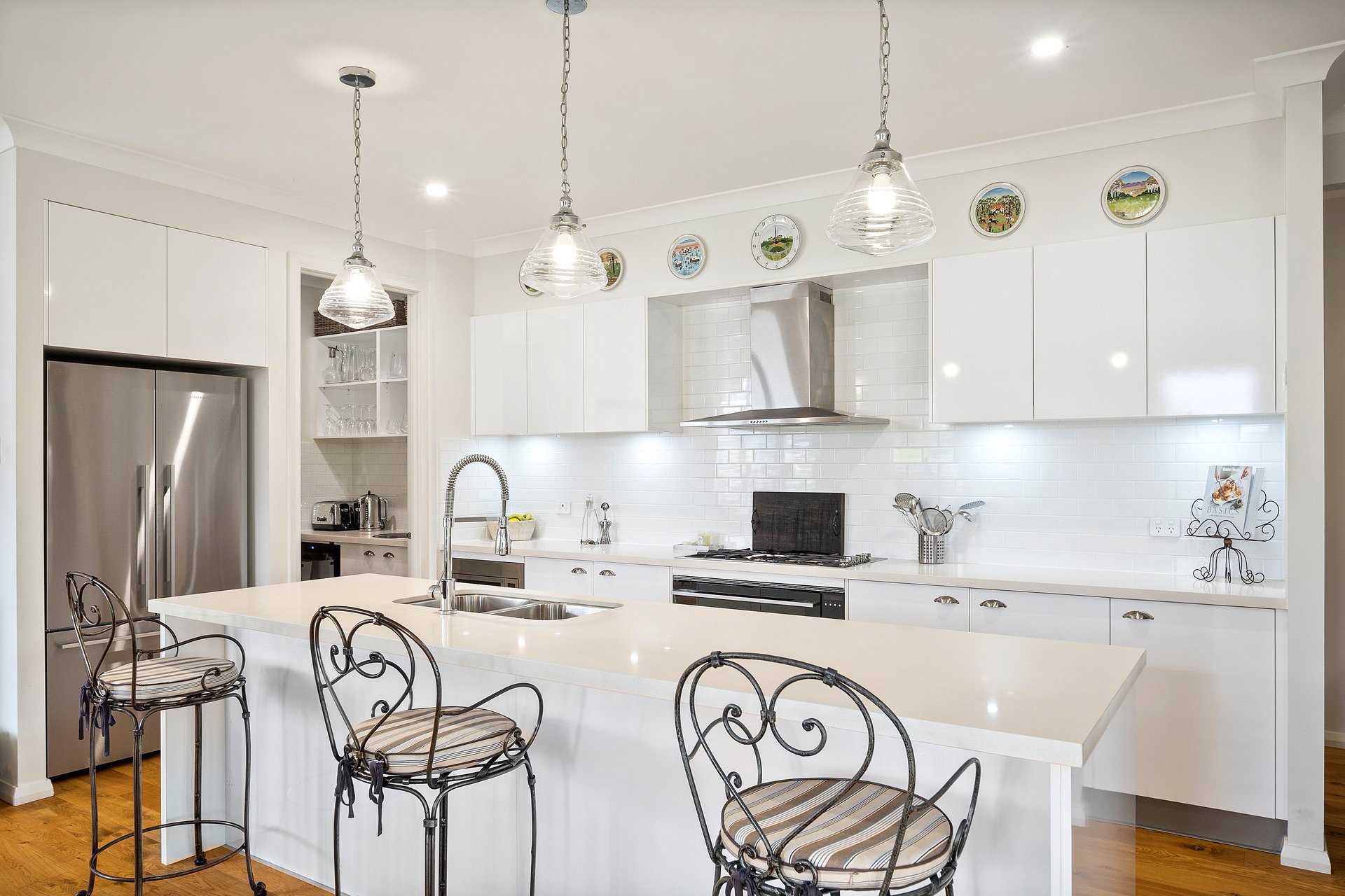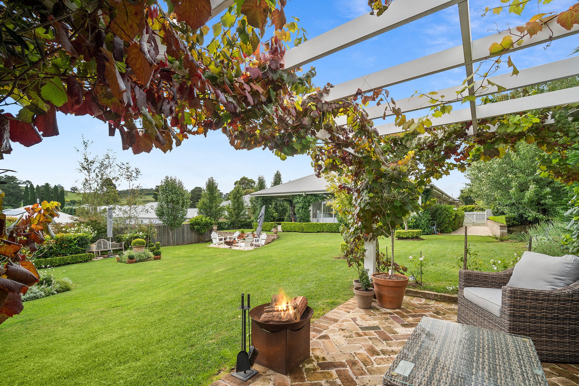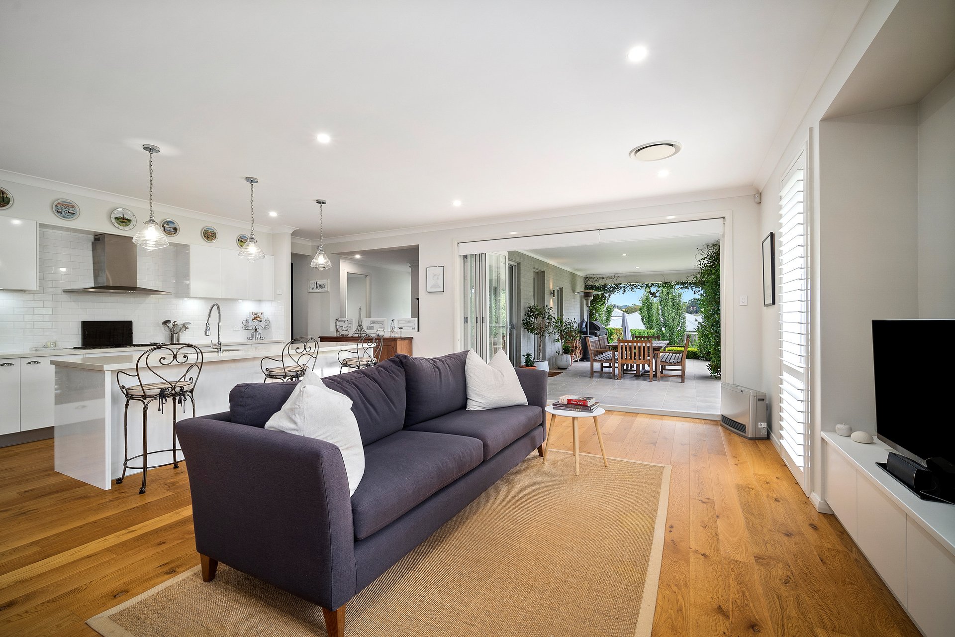 Set within the prestigious Retford Park estate in Bowral, this beautifully appointed residence, built by McDonald Jones Homes in 2020, delivers a refined lifestyle surrounded by elegance and natural beauty, positioned on a generous 1,199sqm parcel. Designed for both comfort and sophistication, the home offers four generous bedrooms complemented by three separate living zones, providing ample space for family living and entertaining. High ceilings throughout enhance the sense of light and openness, while the designer kitchen forms the heart of the home, complete with a gas cooktop, electric oven, and a well-appointed butler's pantry featuring a wine fridge and additional sink. Seamlessly blending indoor and outdoor living, the covered alfresco area is perfect for year-round entertaining, complete with a gas point for BBQs. Beyond, a rear pergola captures prized northern sunlight and tranquil rural views, overlooking a thoughtfully curated garden designed by Charlotte Webb. Enjoy a lifestyle of convenience with easy access to scenic walking and bike paths, Central Park, Ngununggula Regional Art Gallery and Hearth Café, while also being within walking distance to the newly opened David Wood Inclusive Adventure Playground. Additional features such as reverse cycle air-conditioning, a security alarm system, and a large double garage with internal access ensure modern comfort matches the home's undeniable style.