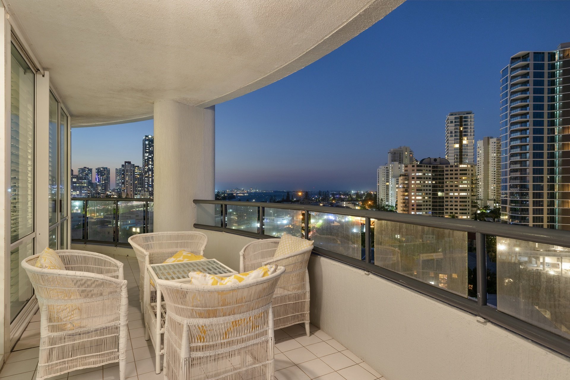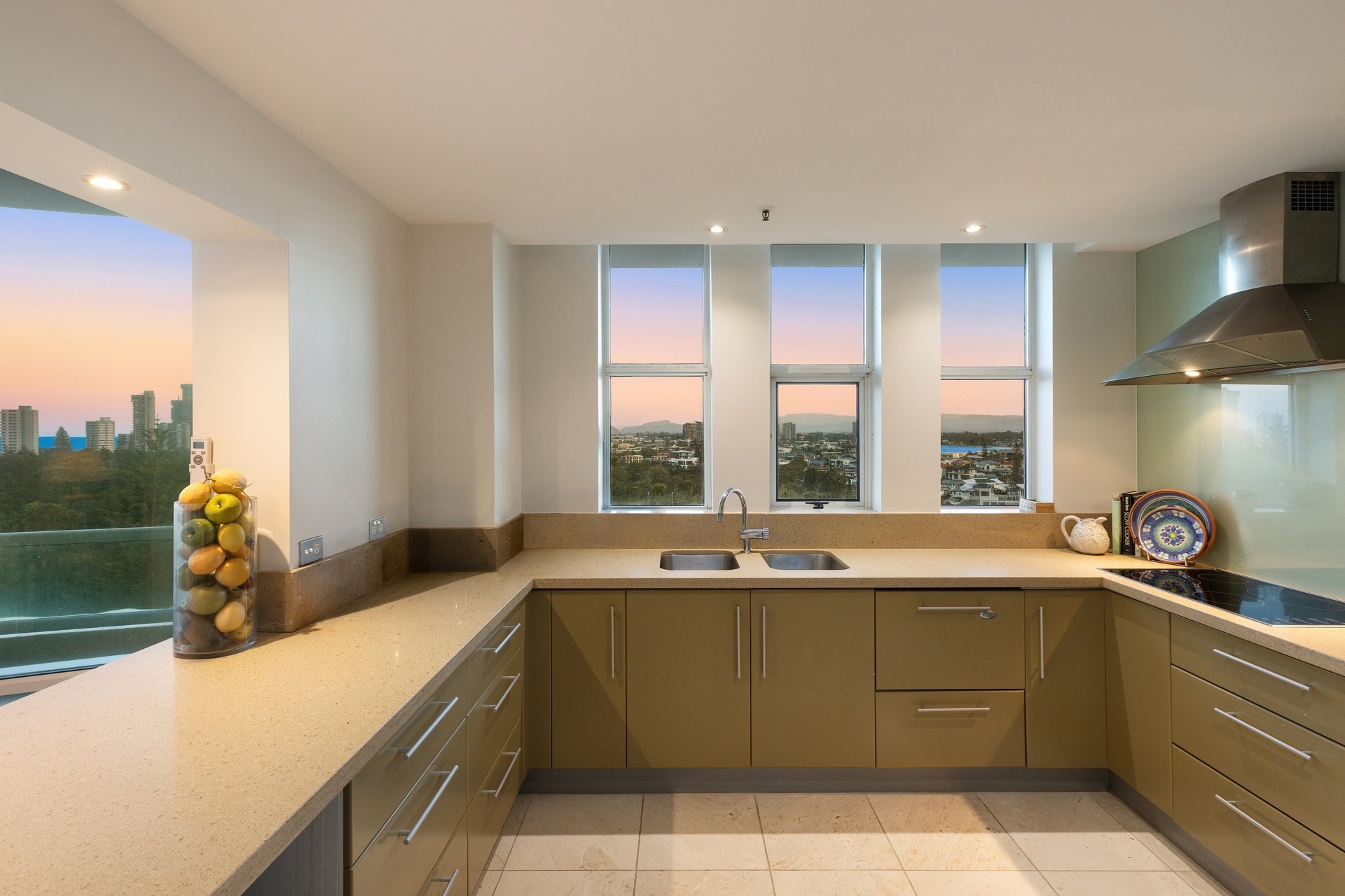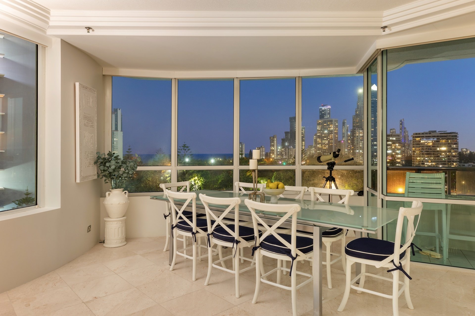 Positioned high above Main Beach, this light-filled apartment captures sweeping views across the ocean, Broadwater and glittering city skyline. Designed for effortless living, the expansive open plan layout is framed by floor-to-ceiling glass, drawing the outlook into every corner of the home. Centrally positioned, the well-appointed kitchen offers generous bench space and functionality, while open plan living and dining zones flow effortlessly to a covered balcony, perfect for entertaining or relaxed evenings. Two spacious bedrooms and two bathrooms complete the layout, including a master suite with ensuite, all set within a resort-style complex just moments from Tedder Avenue's vibrant dining scene.