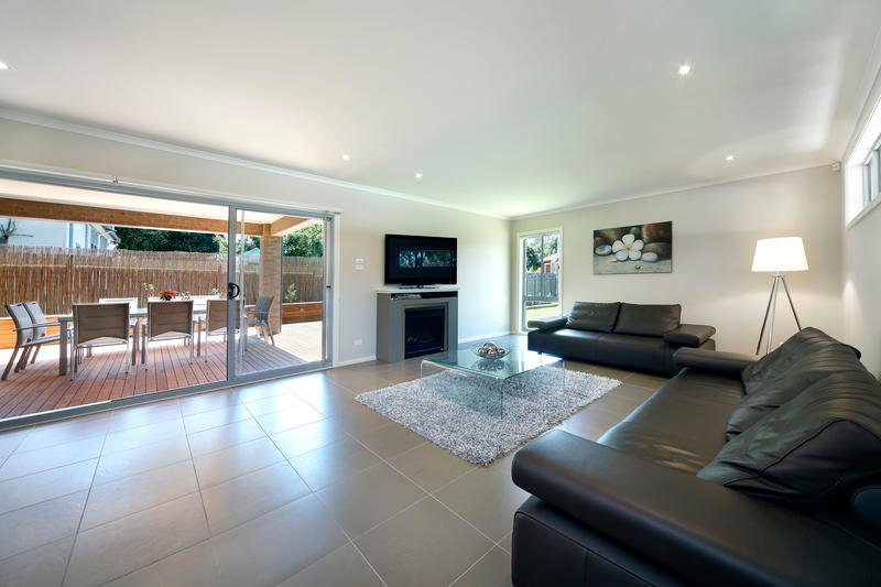 Designed for entertaining with a focus on open plan living this 34 Square brand new designer home features all the modern conveniences and boasts a spacious freeflowing floorplan. The open plan rear of the home centres around a large entertainers kitchen equipped with stainless steel appliances including freestanding smeg oven with gas cook top. The lounge and dining areas open through stacking doors to a huge north facing deck and undercover alfresco entertainment area that overlooks the large level lawn surrounded by landscaped gardens.