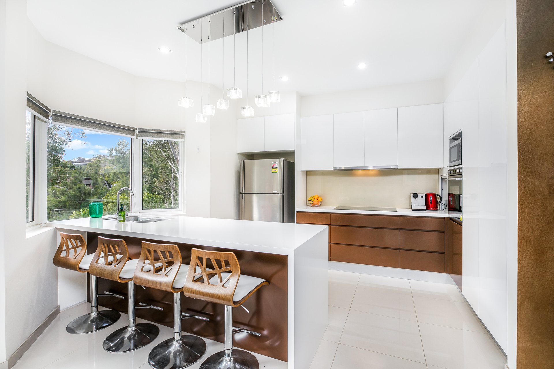 Showcasing a secluded modern sanctuary and set across three levels, this four bedroom home promotes multiple living areas and is privately positioned amongst the treetops. Also located close to local schools, shops and Oyster Bay oval.