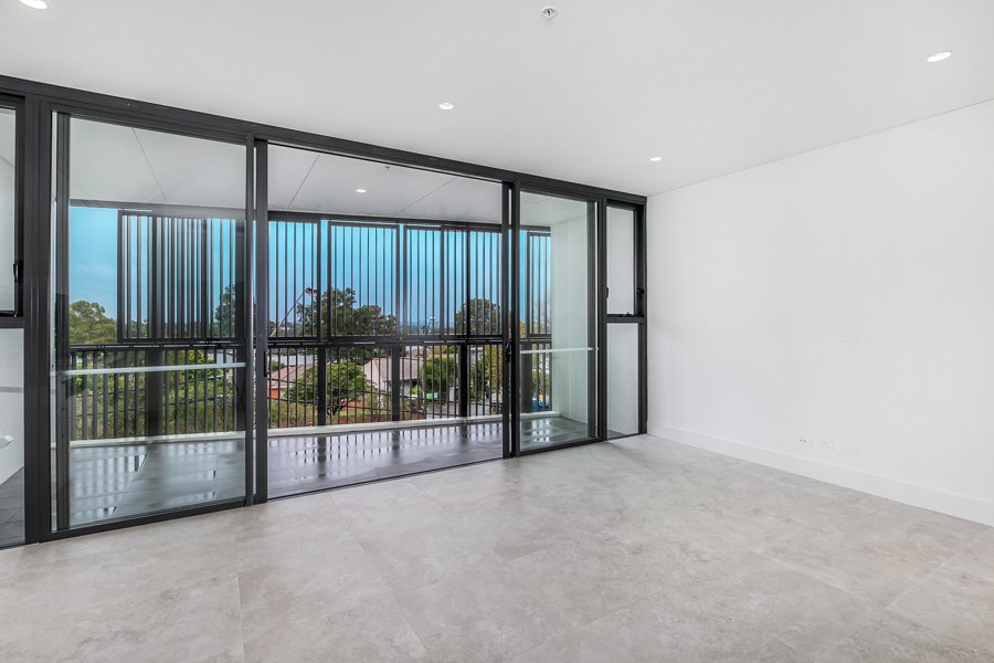 • ‐ Light-filled living and dining area flows through glass sliding doors to private west facing balcony